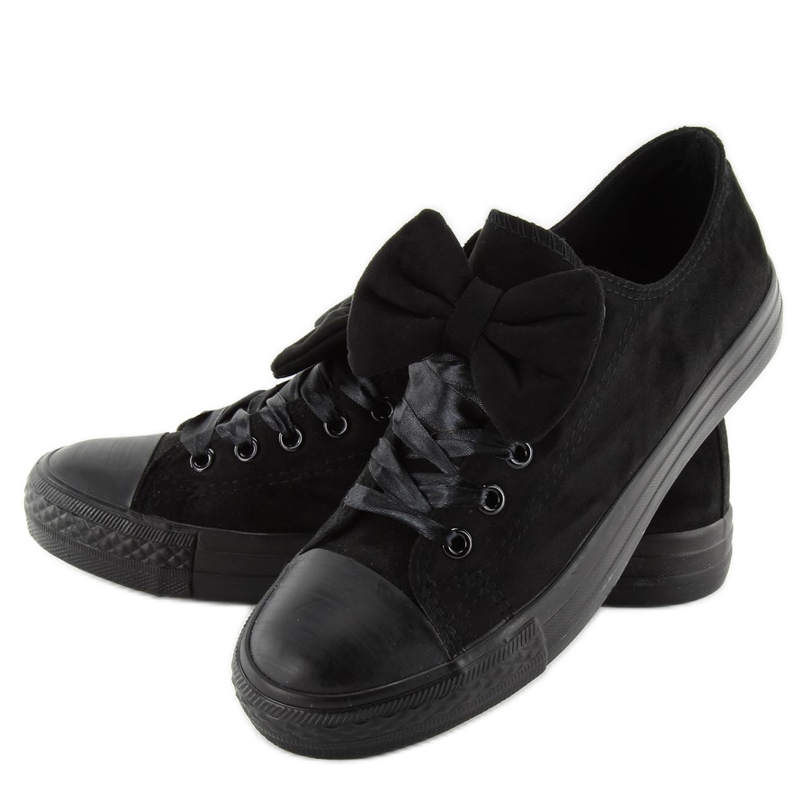 Postaw na wygodę i styl - wybierz klasyczne trampki z kokardką by-025 black i dodaj odrobinę uroku swojej codziennej stylizacji!