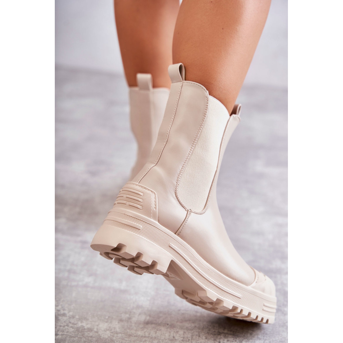 Szczegóły: PG1 Klasyczne Wysokie Workery Botki Beżowe Bassti beżowy