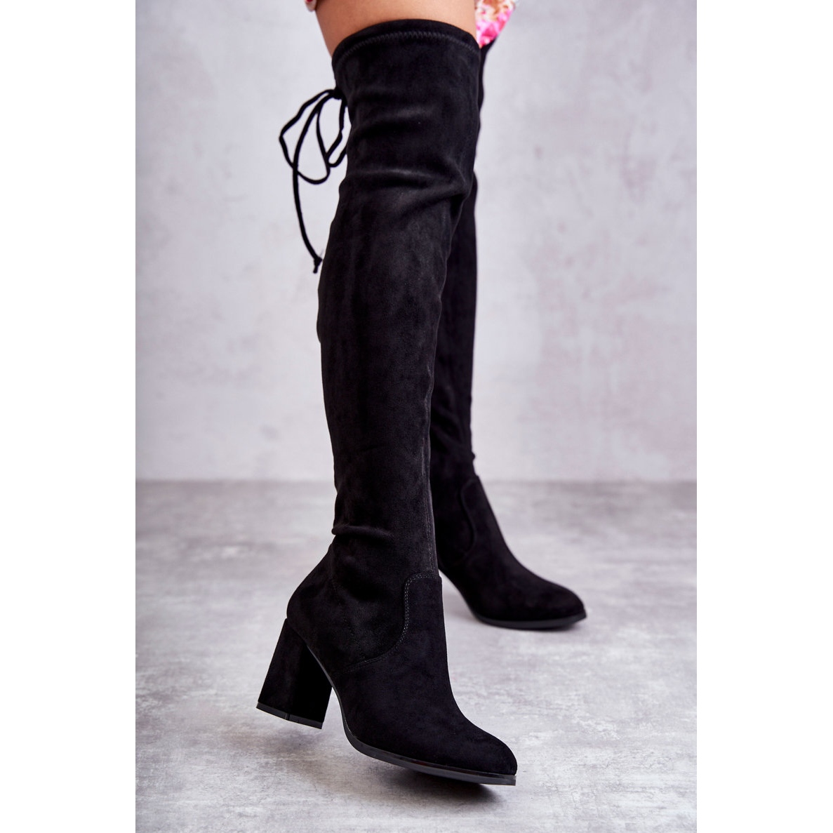 FE1 FE1 Klasyczne Zamszowe Kozaki Muszkieterki Czarne Clarissa