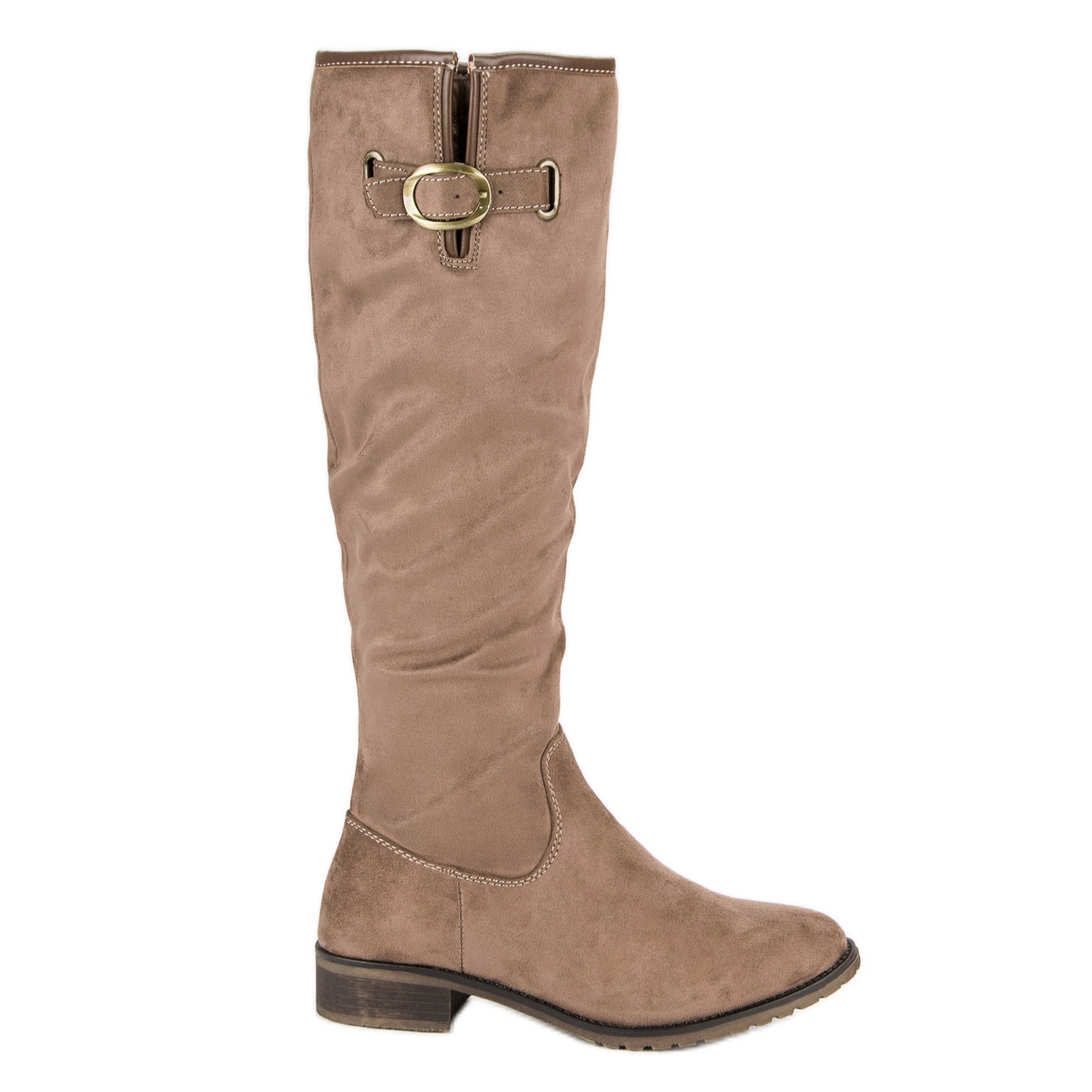Super Me Super Me Klasyczne zamszowe kozaki brązowe