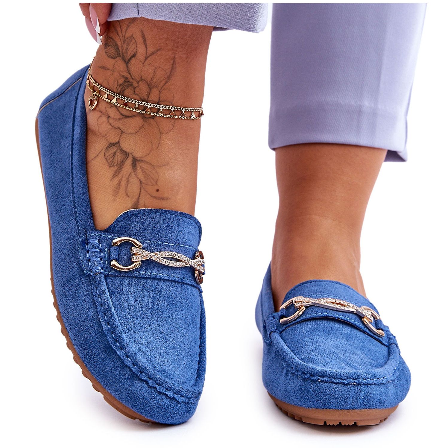 **Klasyczne Zamszowe Mokasyny Z Ozdobą Niebieskie Amera**