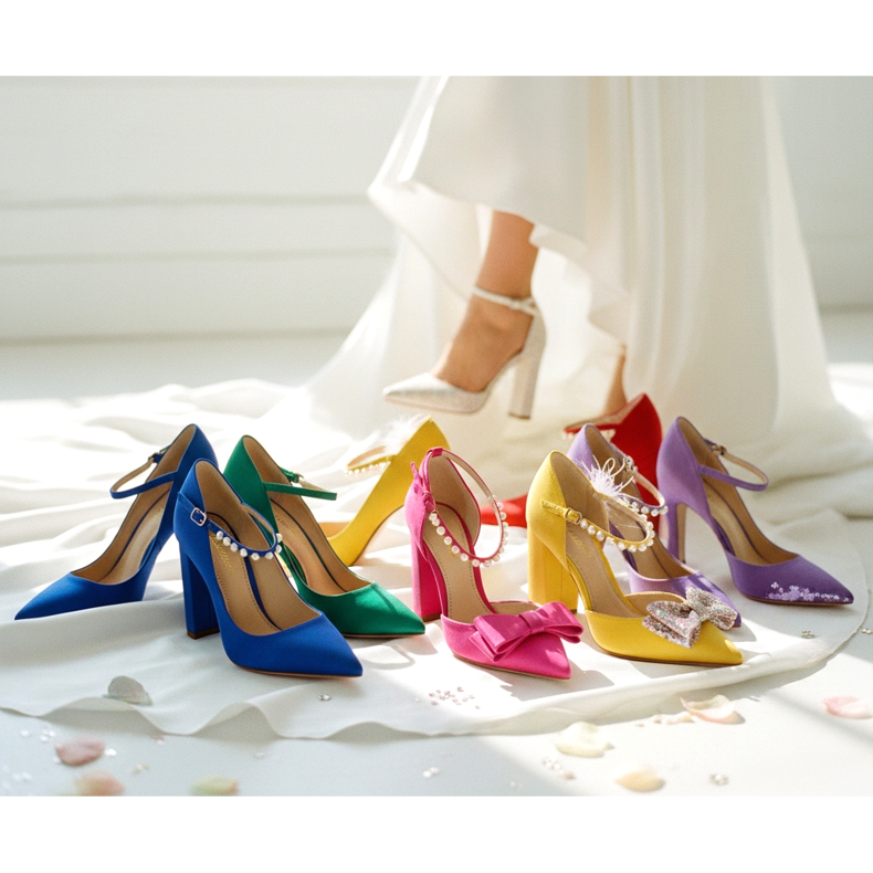 Białe buty do ślubu to już nie obowiązek. Coraz więcej Panien Młodych wybiera kolorowe szpilki – od pasteli po czerwień. Zobacz, jak dobrać kolorowe obuwie do sukni i dlaczego to praktyczny wybór.