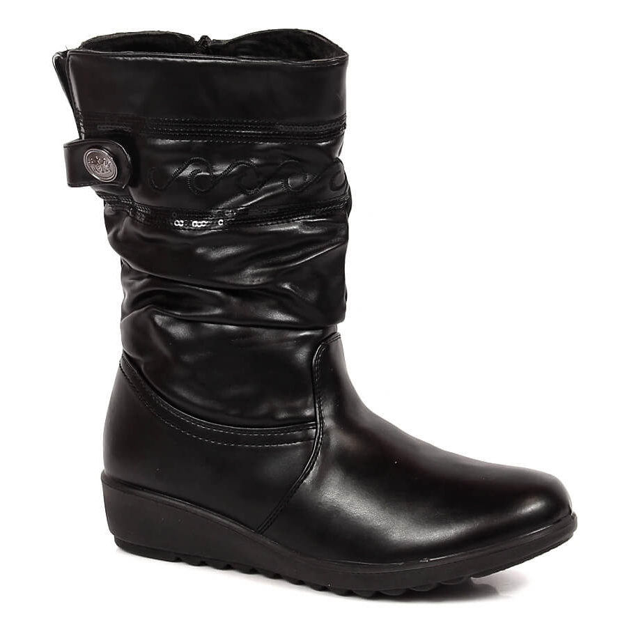 Sabatina Komfortowe botki damskie marszczone ocieplane czarne Sabatina