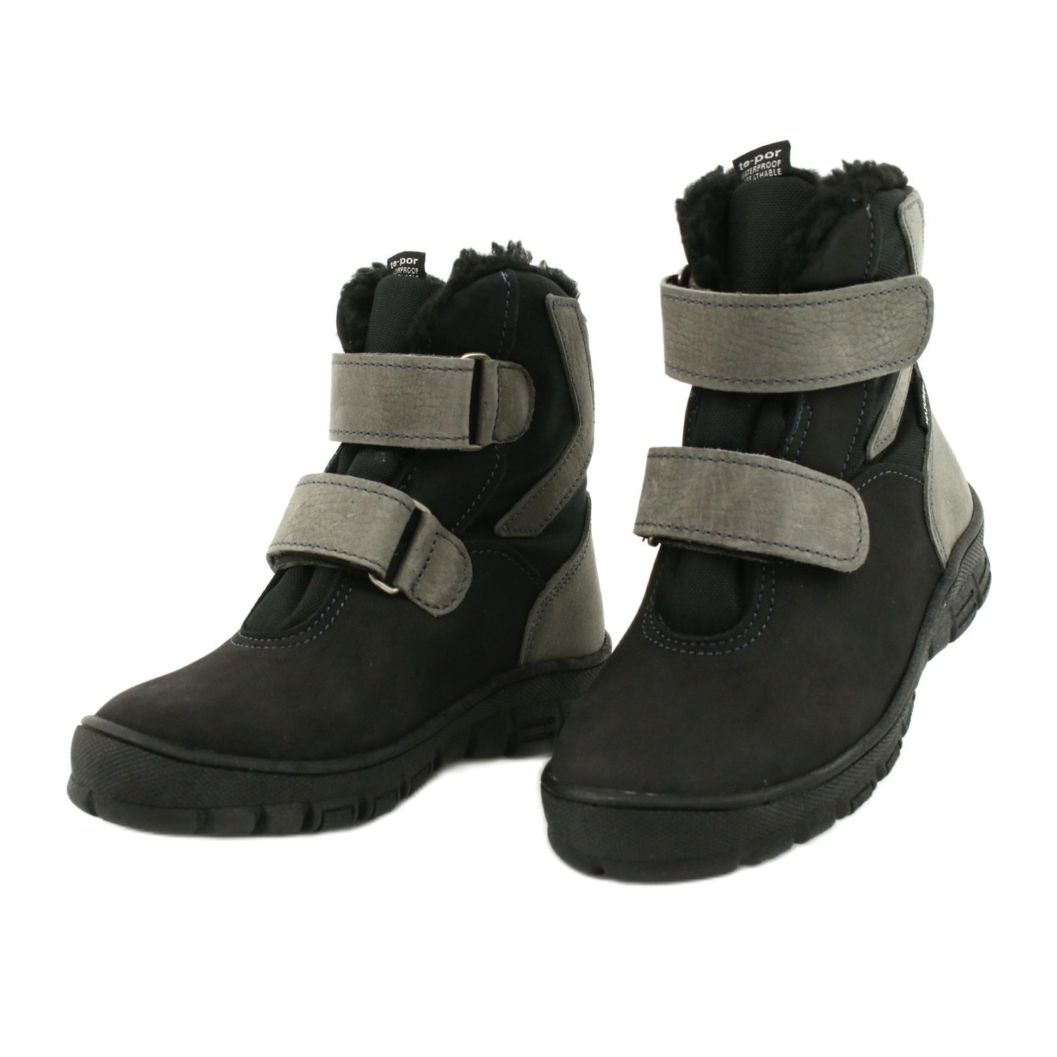 Przedstawiamy kozaczki trzewiki z membraną TE-POR Mazurek 1351 w kolorze czarnym i szarym. To idealne obuwie dla najmłodszych, które dzięki połączeniu skóry naturalnej z dodatkowym materiałem, zapewnia maksymalny komfort i ciepło podczas zimowych spacerów.