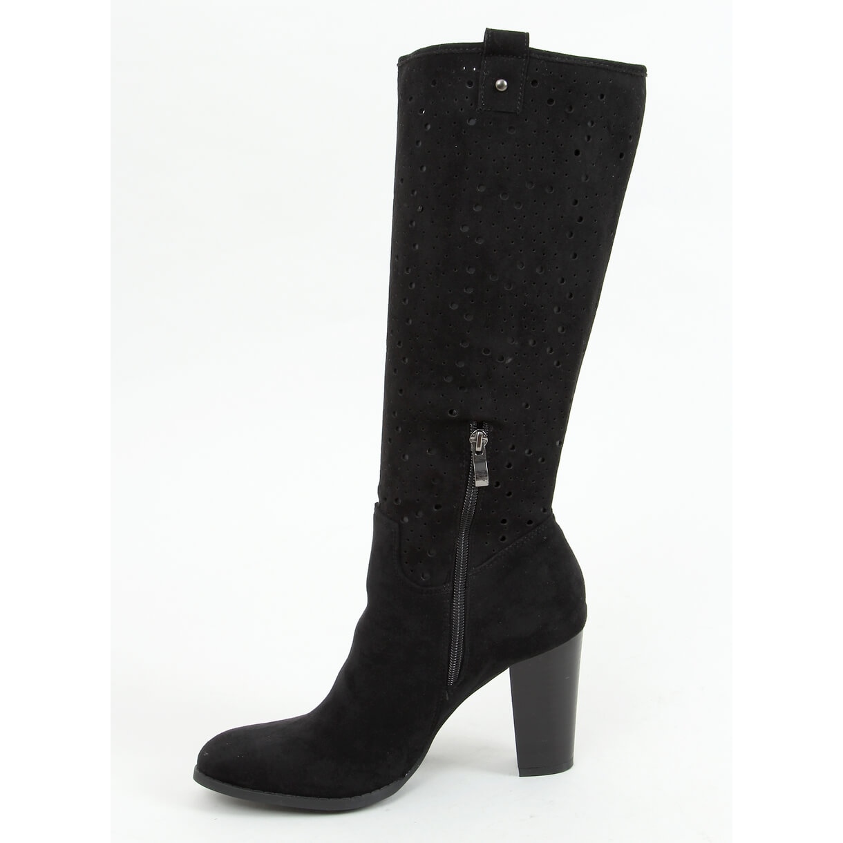 Kozaki ażurowe na obcasie czarne RT89956 Black to idealna propozycja dla kobiet ceniących sobie zarówno styl, jak i komfort noszenia. Wykonane z wysokiej jakości ekologicznego zamszu, te damskie kozaki zachwycają swoim subtelnym ażurowym wzorem, który dodaje im wyjątkowego charakteru. Stabilny słupek o wysokości 9 cm zapewnia doskonałą równowagę pomiędzy elegancją a wygodą, co sprawia, że są one doskonałym wyborem na co dzień.