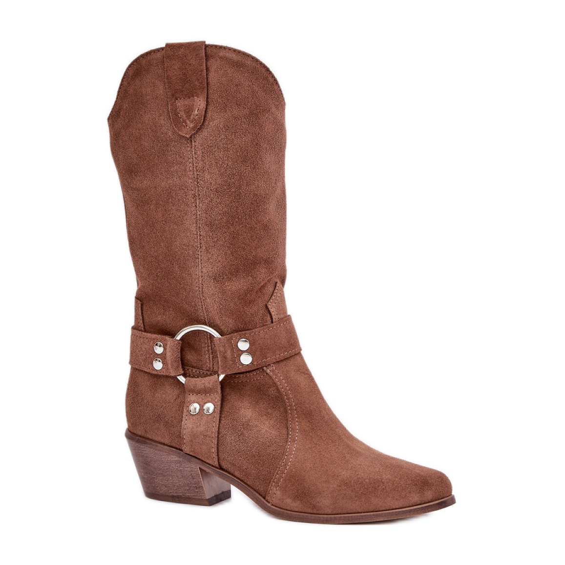 Zazoo Kozaki Damskie Kowbojki Zazoo 3669 brązowe