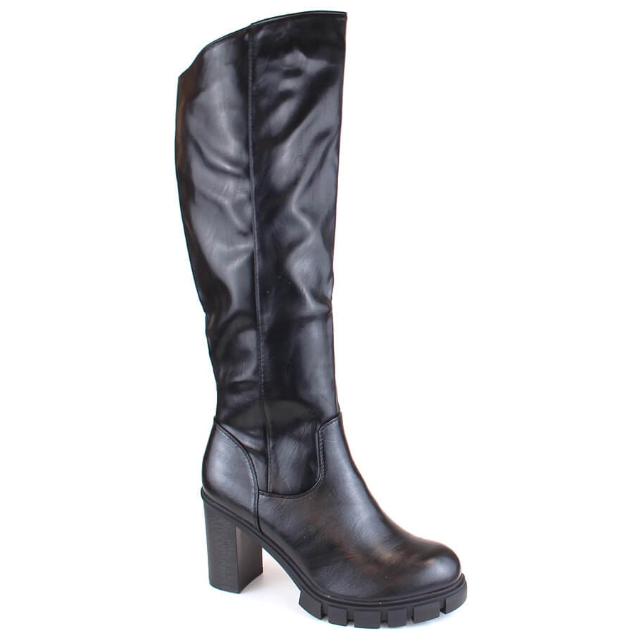 M. DASZYŃSKI M. DASZYŃSKI Kozaki damskie na słupku i platformie ocieplane czarne M.Daszyński SA218-4