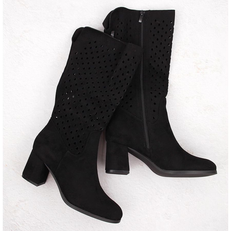 M. DASZYŃSKI M. DASZYŃSKI Kozaki damskie zamszowe ażurowe czarne M.Daszyński SA156-10B