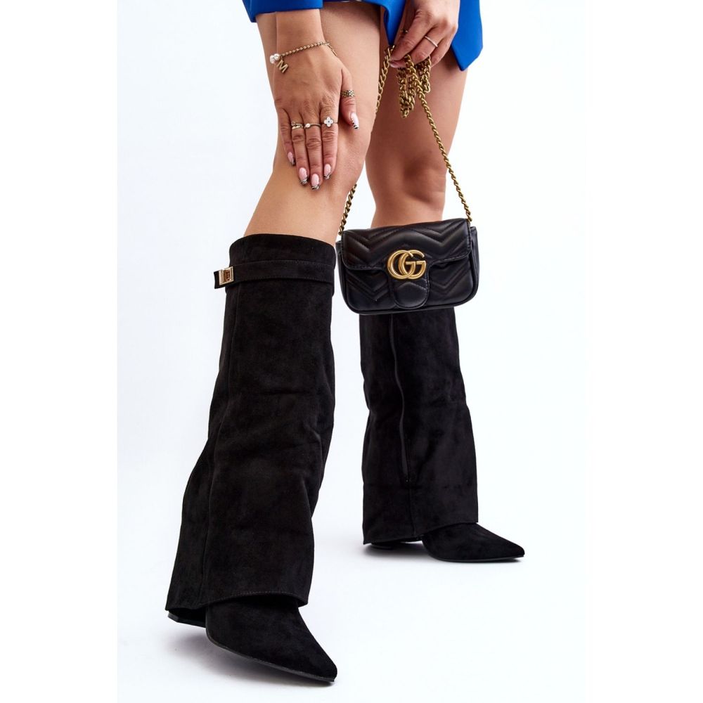 Kozaki Model Portora 9501A Black marki Step in style to idealny wybór dla kobiet, które pragną połączyć elegancję z komfortem. Wykonane z wysokiej jakości eko zamszu, te stylowe kozaki wyróżniają się cholewką, która efektownie zachodzi na obcas, nadając całej sylwetce nowoczesny i niepowtarzalny wygląd.