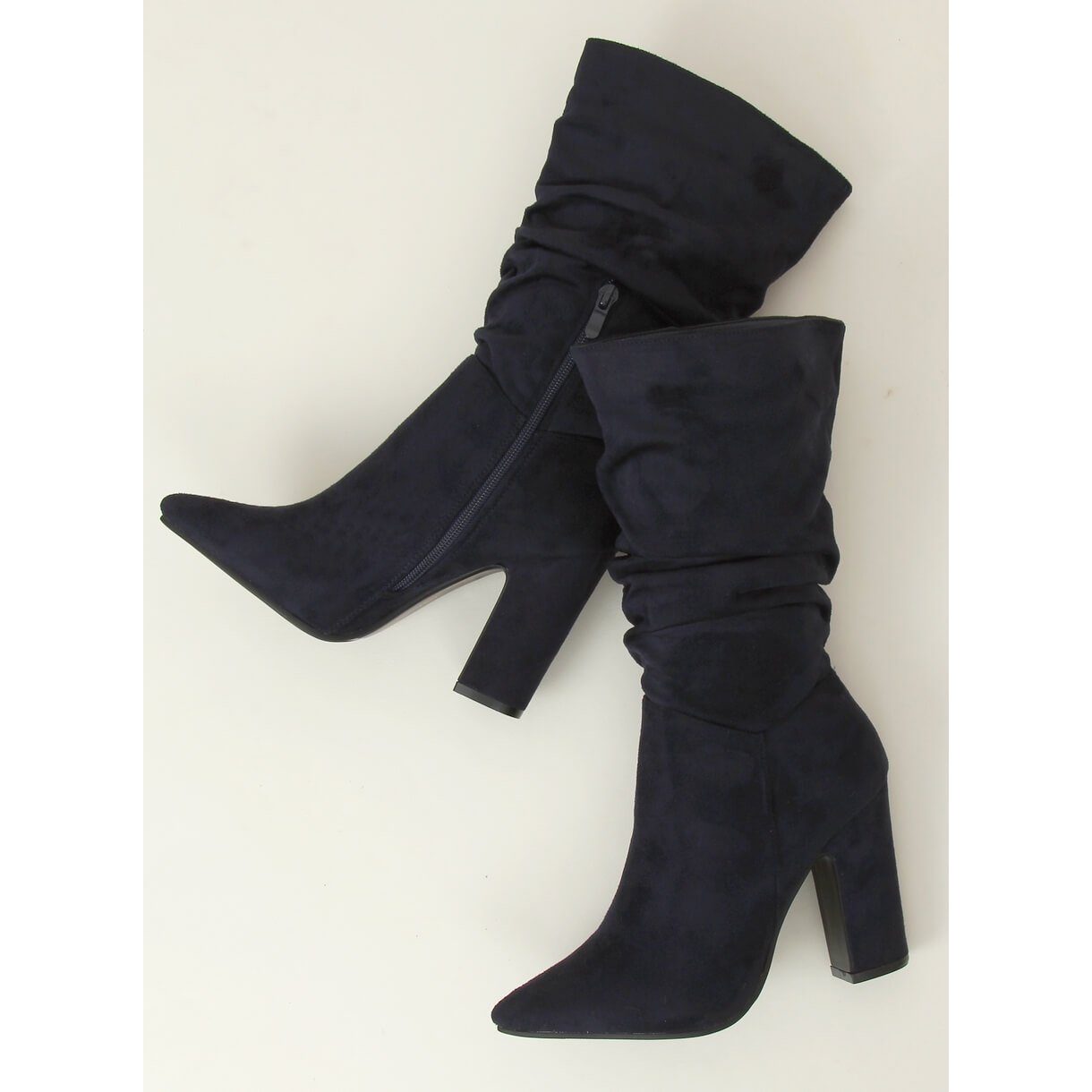 Przedstawiamy granatowe kozaki na obcasie D7510 D.BLUE, które stanowią doskonały wybór dla każdej kobiety pragnącej połączyć elegancję z komfortem. Wykonane z ekologicznego zamszu, te klasyczne kozaki zachwycają modnie marszczoną cholewką, nadającą im wyjątkowego charakteru. Stabilny obcas słupek o wysokości 10 cm pięknie modeluje sylwetkę i wysmukla nogi, a delikatny szpic nosków sprawia, że stopa prezentuje się bardzo zgrabnie.