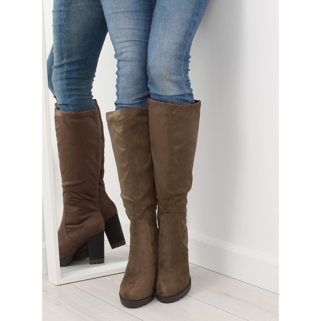 Szczegóły: Kozaki na obcasie khaki 7290 Khaki