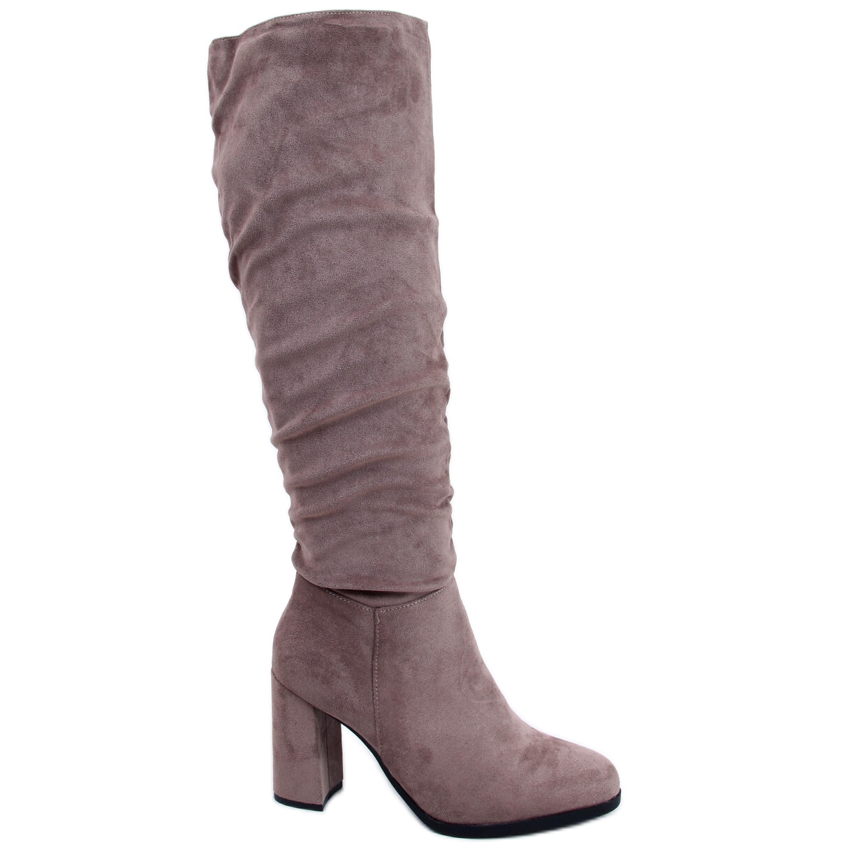 BM BM Kozaki na obcasie klasyczne Vilma Khaki szare