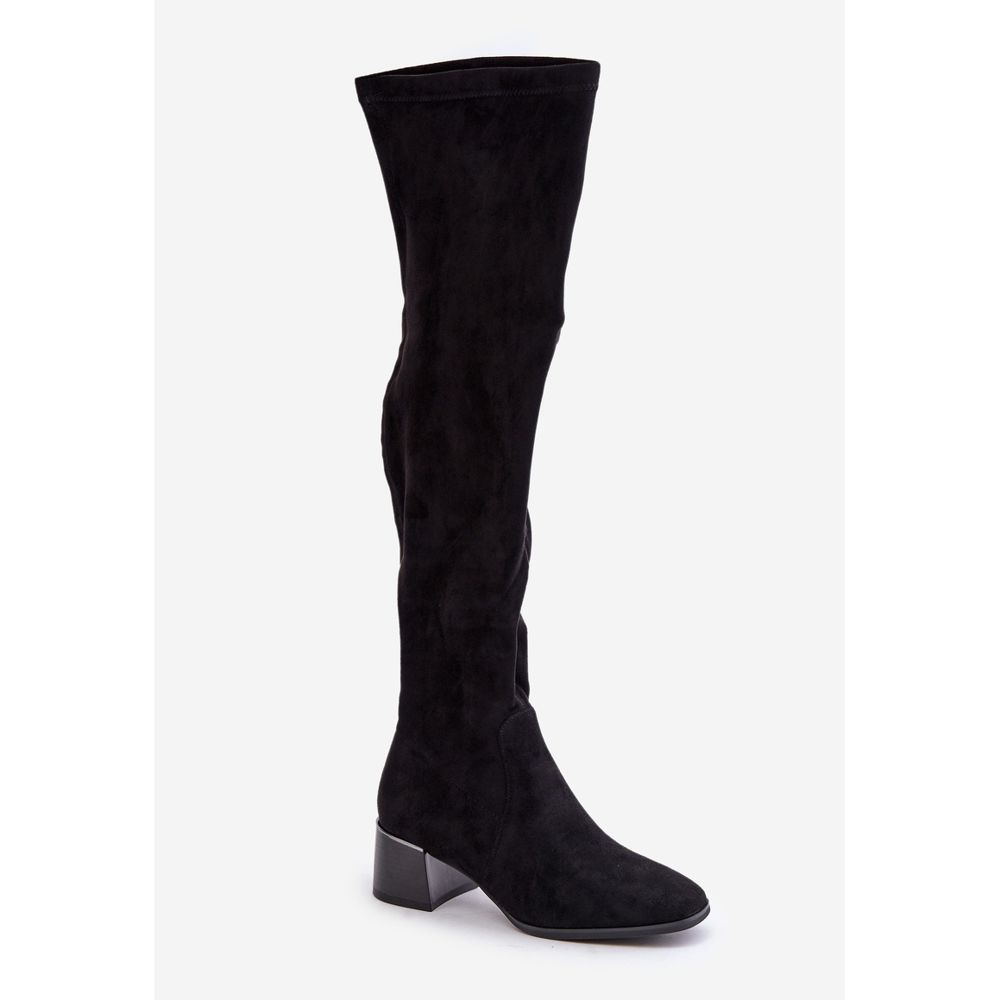 Szczegóły: Kozaki Na Obcasie Klocku Za Kolano Z Eko Zamszu Czarne Galadi