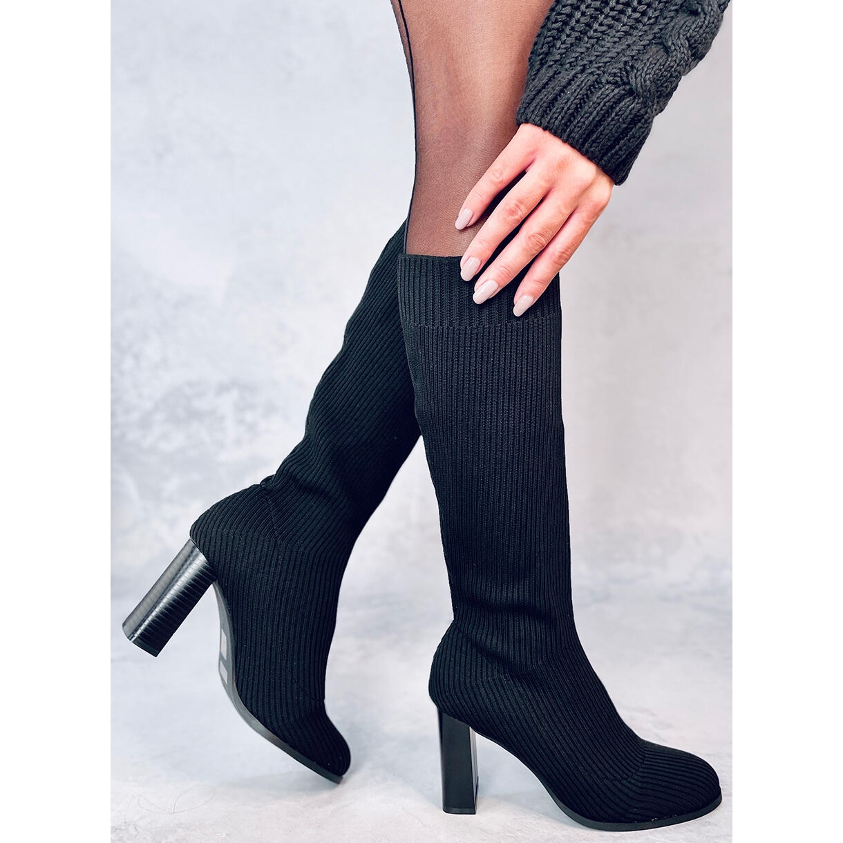 Kozaki na obcasie skarpetkowe Claudia Black — elegancja i komfort w jednym