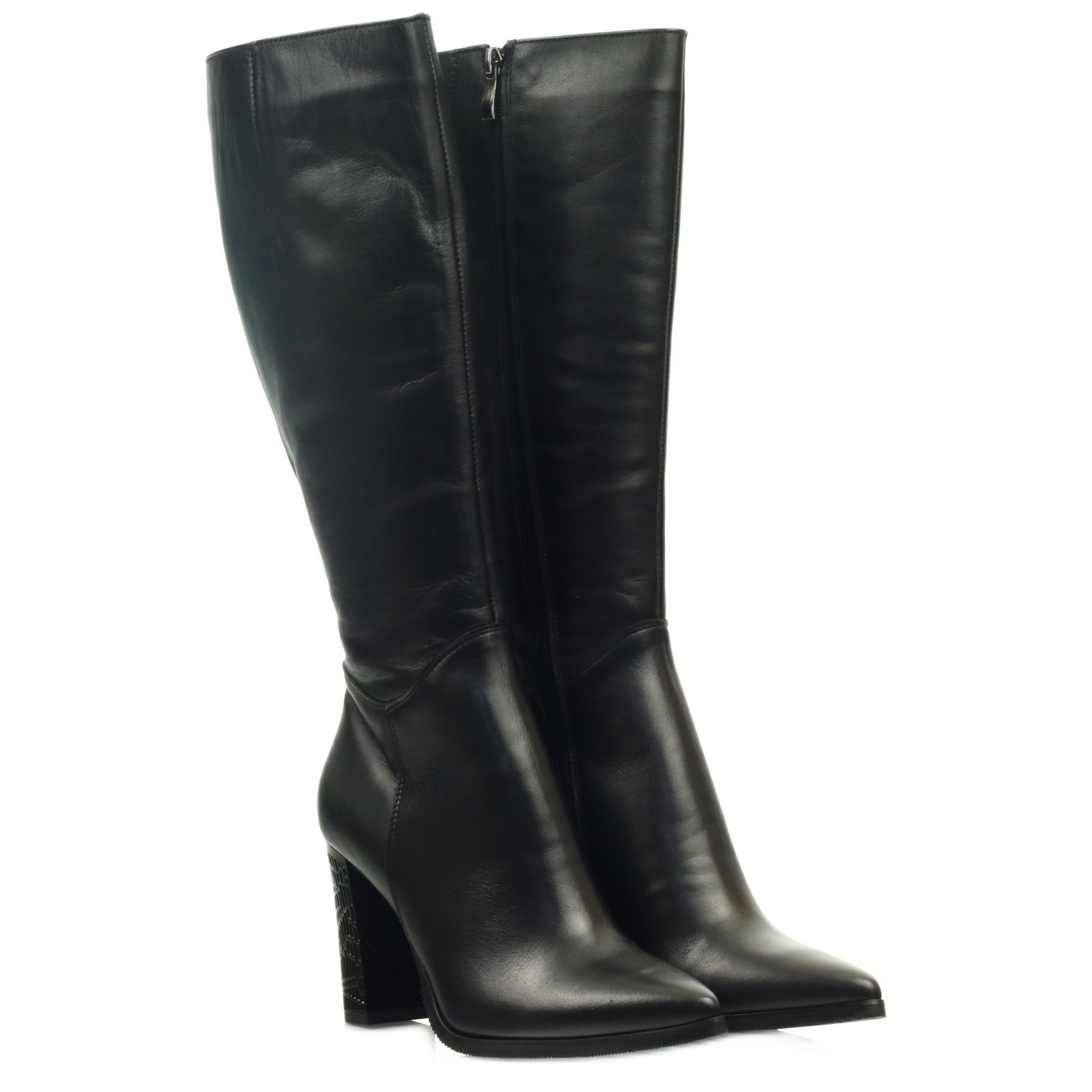 Czarne kozaki Espinto posiadają klasyczny fason, sięgający do kolana, co czyni je uniwersalnym dodatkiem do różnorodnych stylizacji - od casualowych po bardziej eleganckie. Zdobiony obcas na słupku o wysokości 8,5 cm jest nie tylko estetyczny, ale przede wszystkim stabilny i komfortowy w użytkowaniu, co pozwala na długotrwałe noszenie bez uczucia zmęczenia.