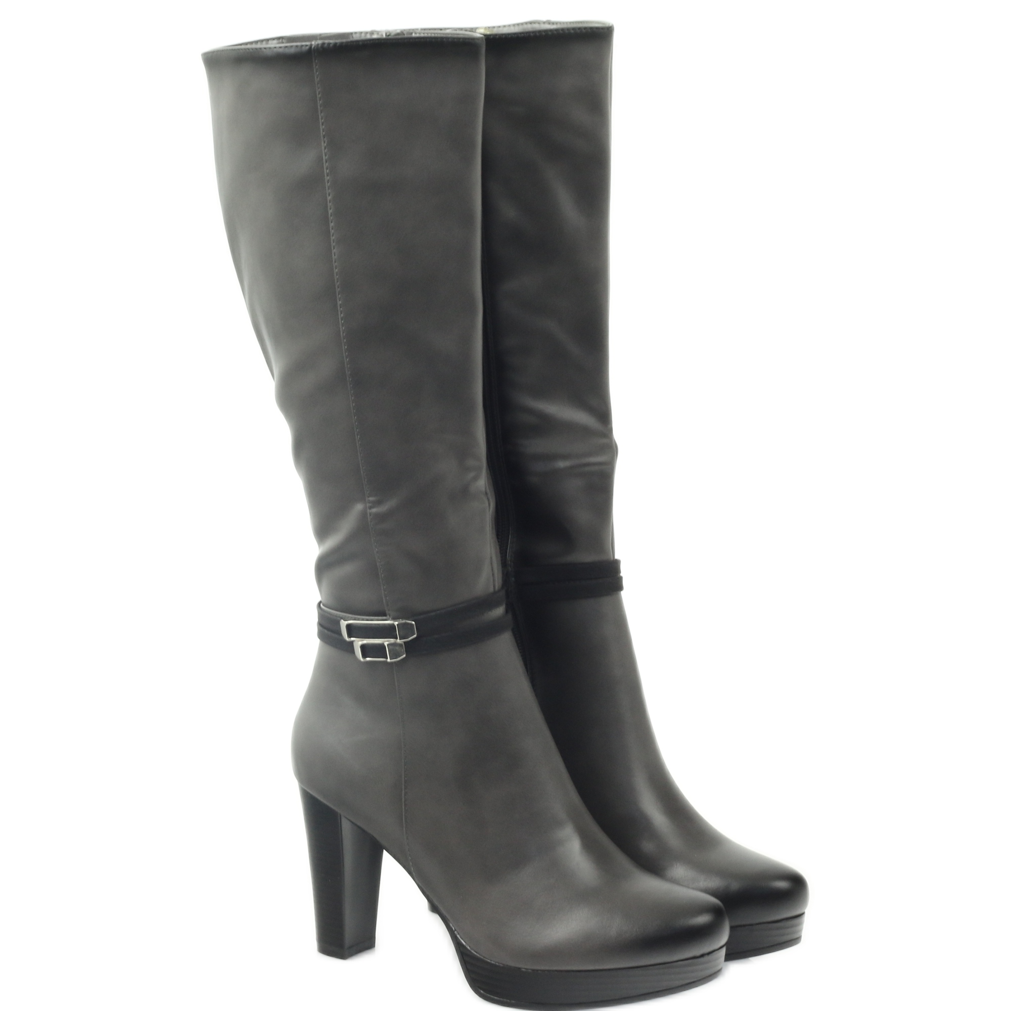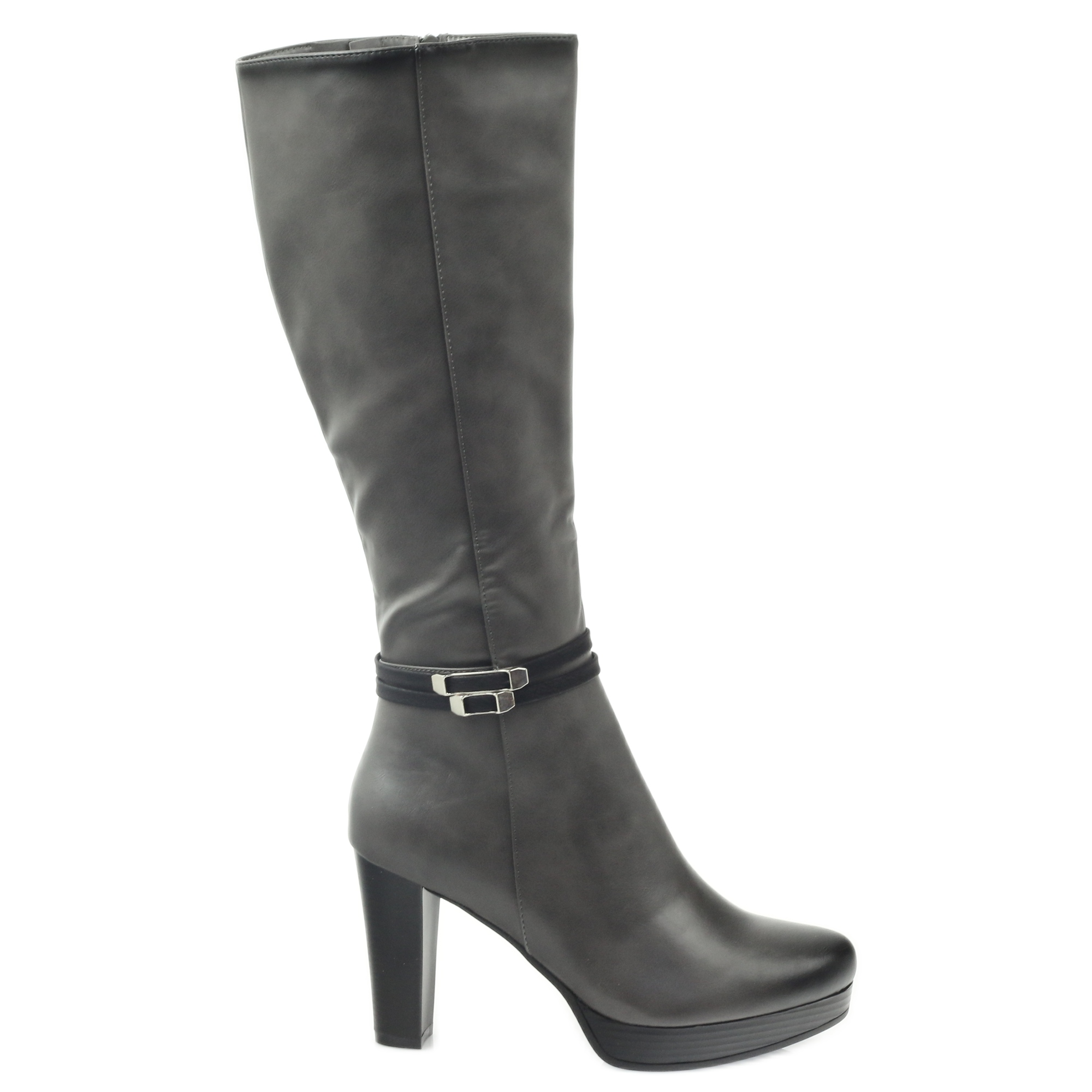 M.Daszyński M.Daszyński Kozaki na słupku Daszyński AM61 czarne szare