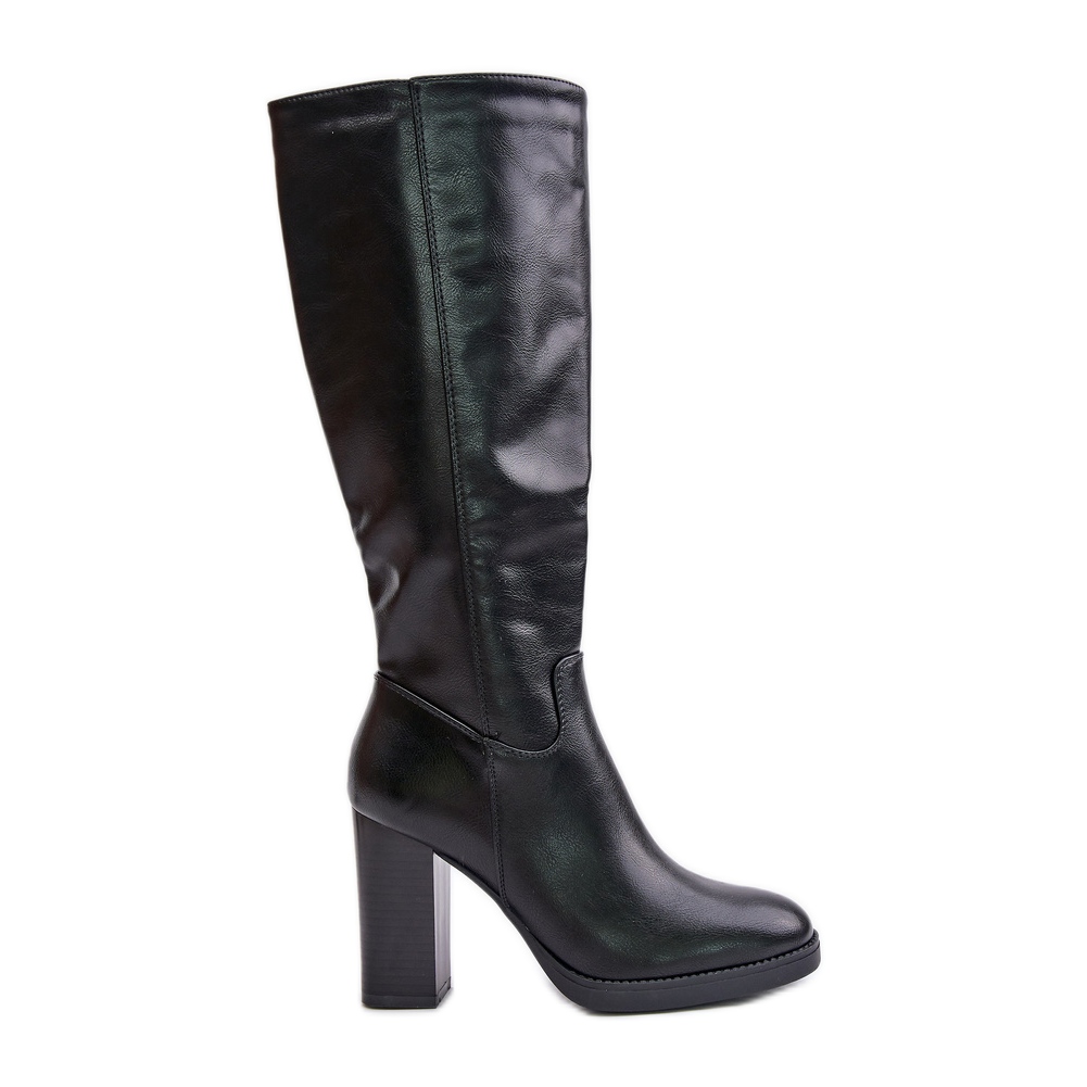 Inna marka Kozaki Na Słupku Eko Skórzane Przed Kolano Czarne Riamaya