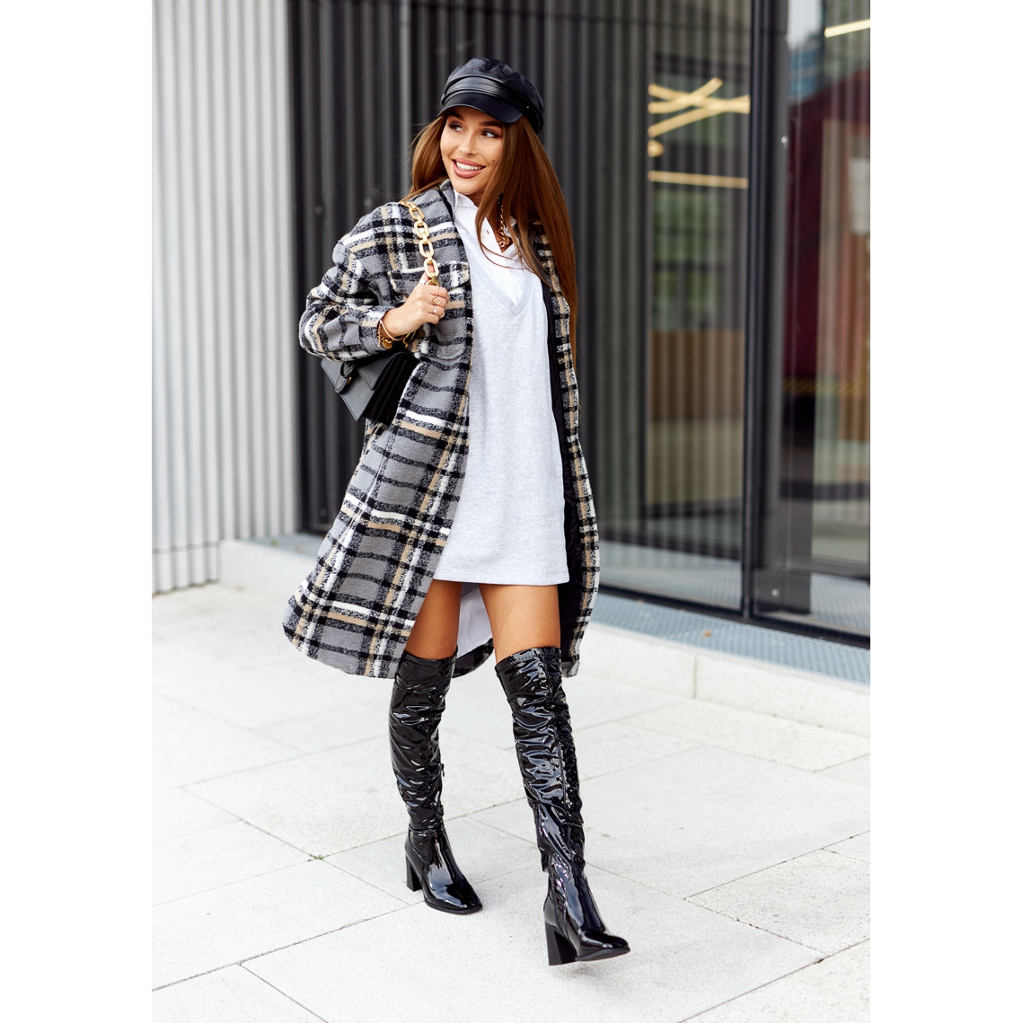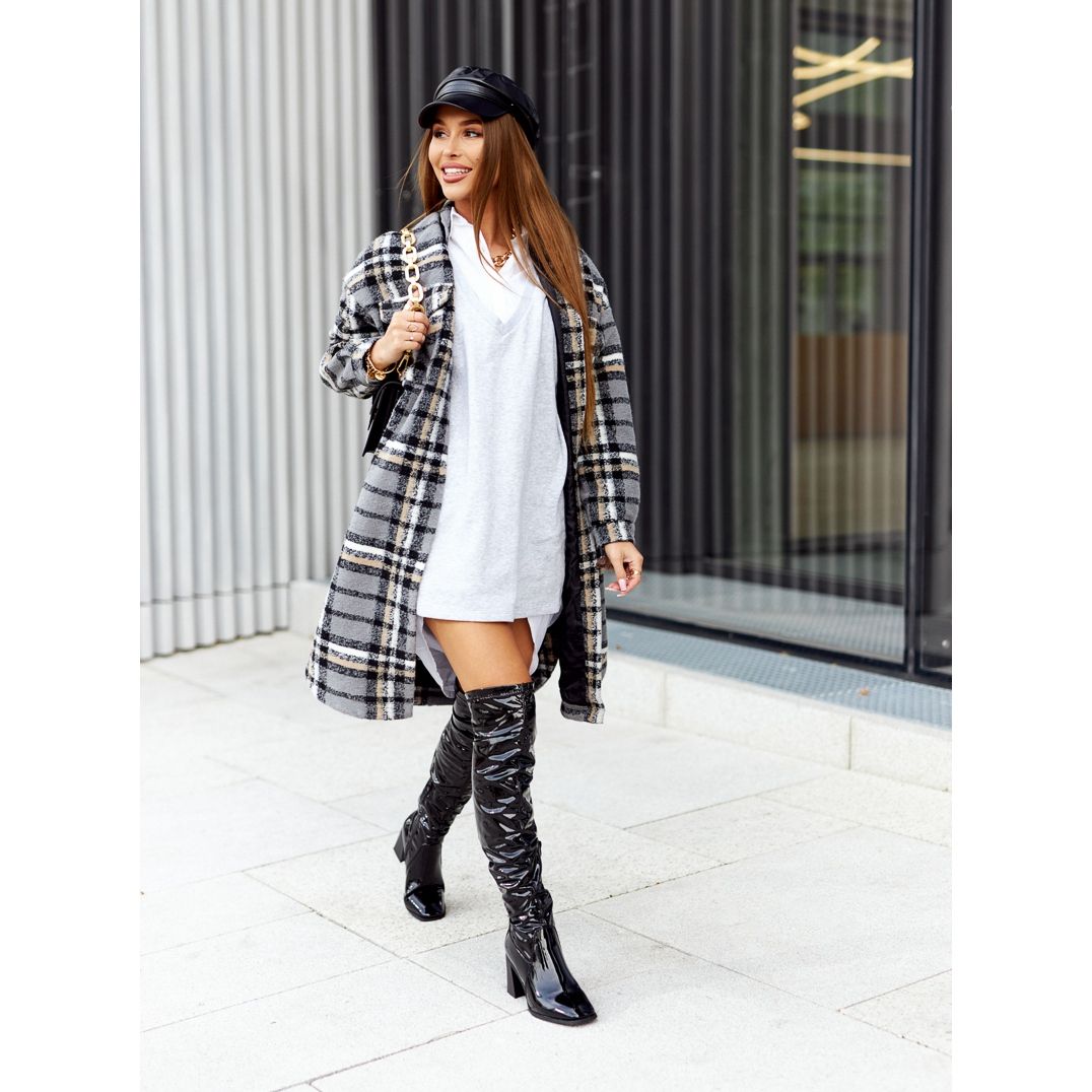 Ich wysoka cholewka, sięgająca 57 cm, została wzbogacona o wygodny suwak u dołu, co ułatwia zakładanie. Okrągły nosek oraz obcas w szerokim słupku o wysokości 8 cm zapewniają stabilność i komfort noszenia przez cały dzień. Kozaki te wyposażone są w koc obuwniczy, a ocieplana wkładka zapewnia ciepło nawet w chłodne dni.