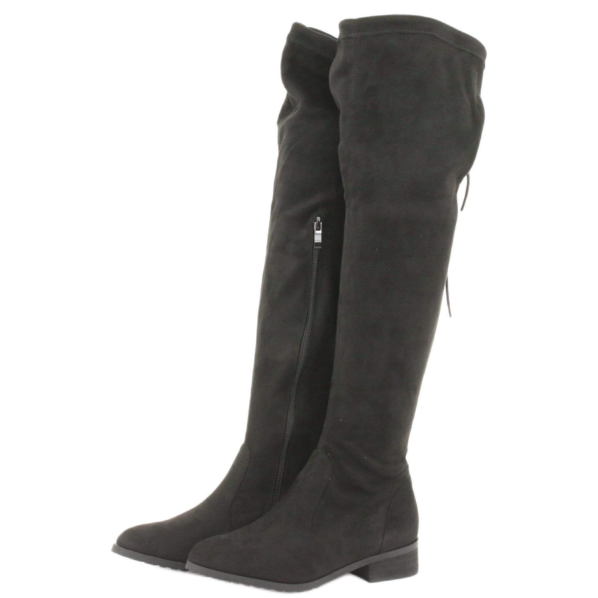 Długość cholewki wynosząca około 55 cm oraz obwód cholewki 38 cm (bez rozciągania) sprawiają, że te kozaki idealnie będą leżeć na różnych sylwetkach. Wnętrze butów ocieplane jest miękkim filcem obuwniczym, co zapewnia doskonałą oddychalność i komfort noszenia, nawet w chłodniejsze dni. Zapięcie na suwak oraz cholewka zakończona sznurkiem dodają praktyczności oraz ułatwiają zakładanie i zdejmowanie.