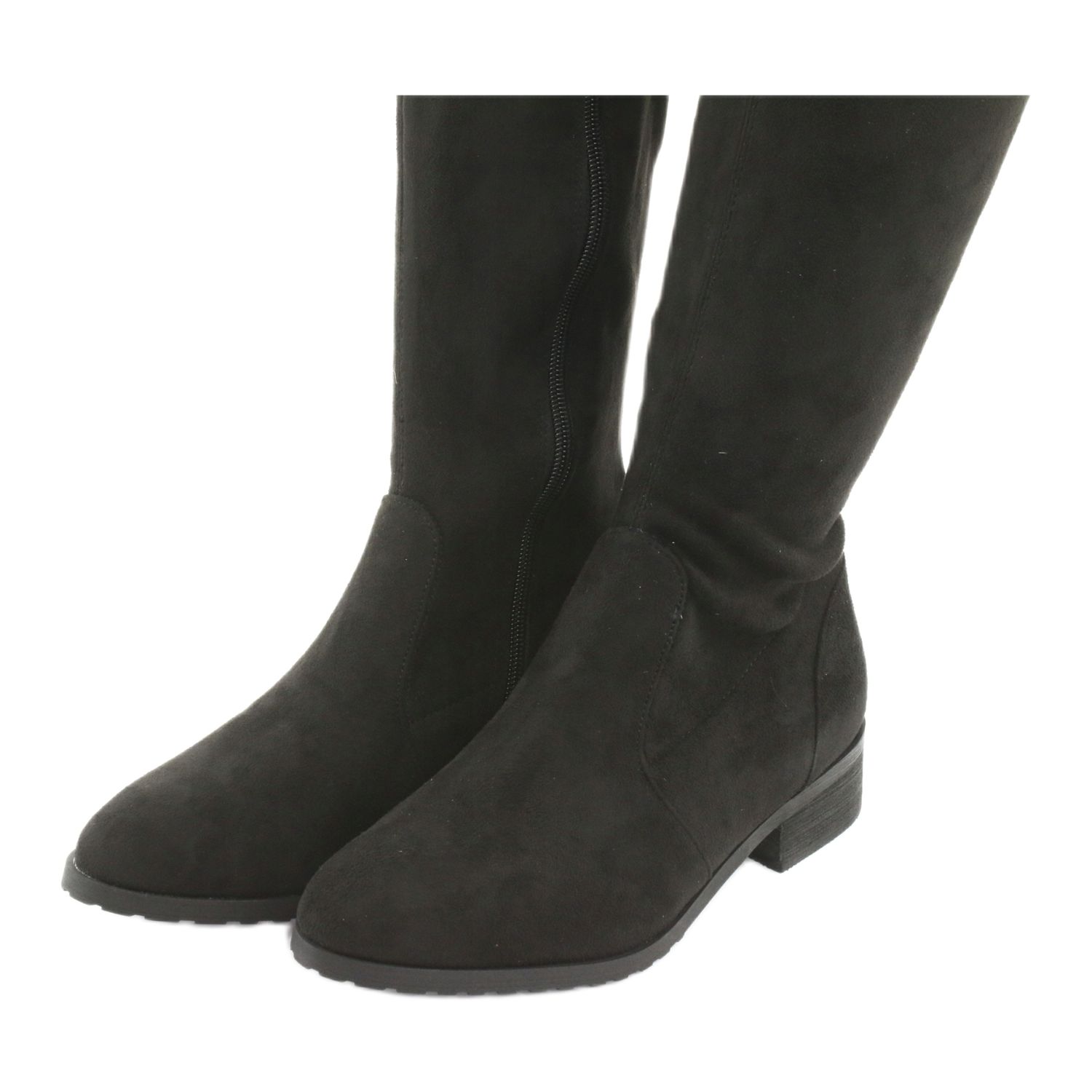 Zapraszamy do odkrycia wyjątkowych kozaków za kolano M.Daszyński model 1602, które łączą w sobie elegancję i komfort. Te długie, czarne muszkieterki wykonane są z materiału tekstylnego w formie stretchowego zamszu, który doskonale dopasowuje się do kształtu nogi, podkreślając jej linie i dodając szyku.