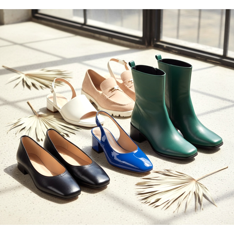 Kwadratowy nosek zadomowił się w 2026 roku w praktycznie każdej kategorii obuwia damskiego. Najczęściej można go spotkać w: