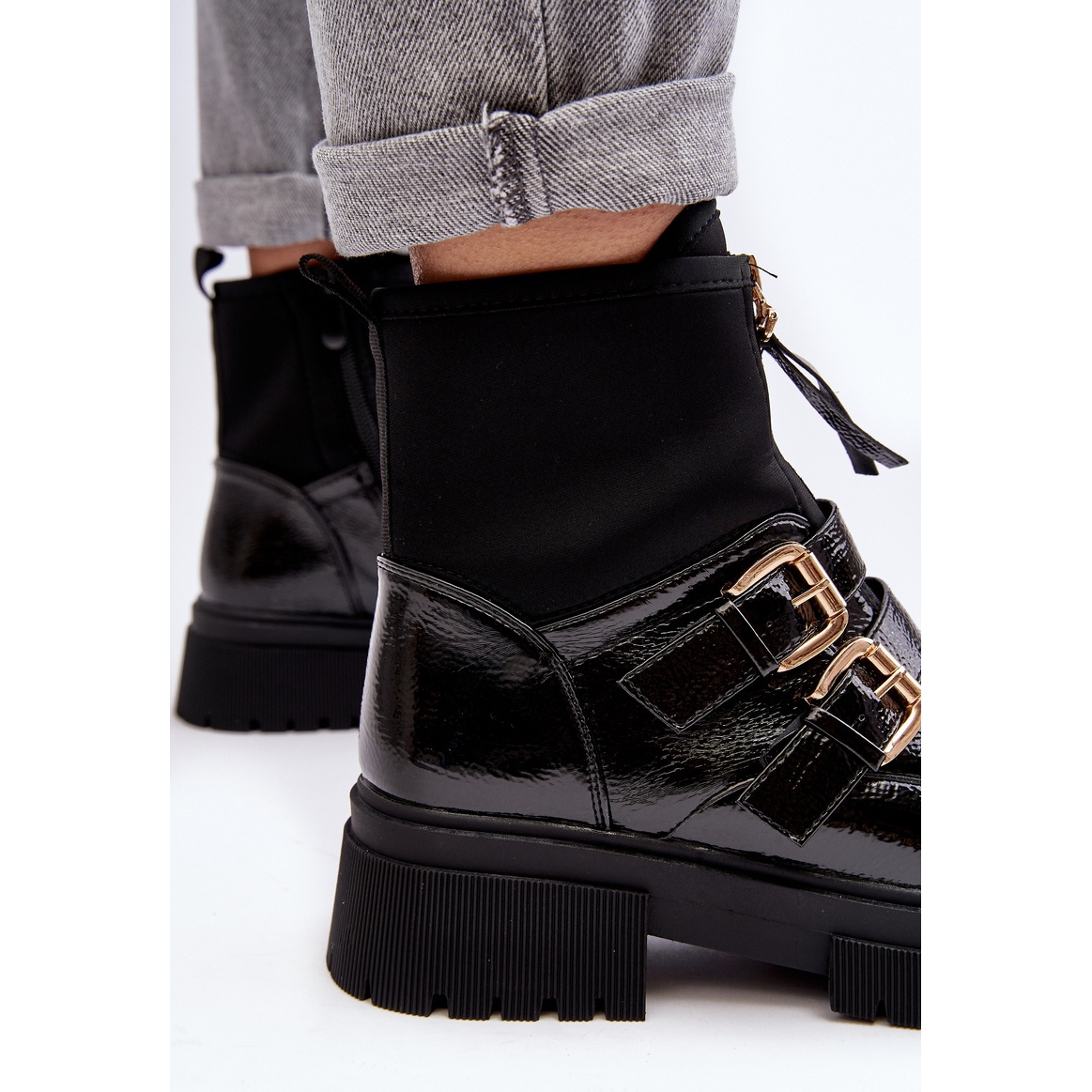 Inna marka Lakierowane Botki Damskie Na Płaskim Obcasie Czarne Rellisa