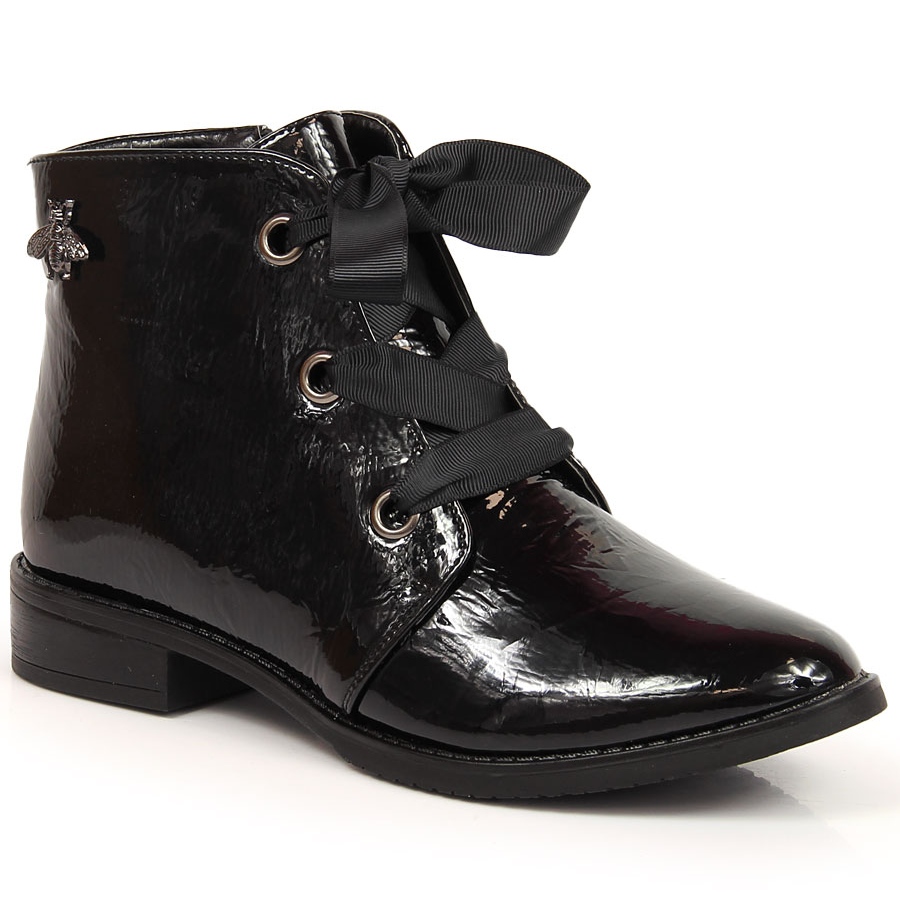 Szczegóły: M. DASZYŃSKI Lakierowane botki damskie ocieplane czarne Daszyński SAN5A