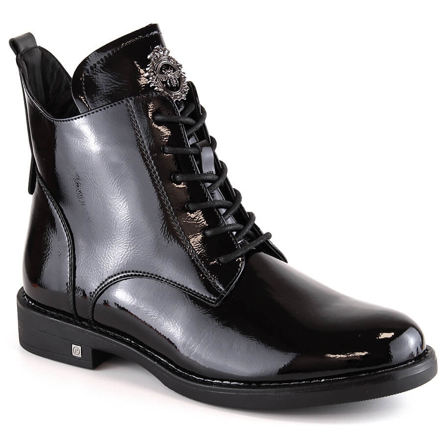 Potocki Lakierowane botki damskie sznurowane i na zamek czarne Potocki SZ12179