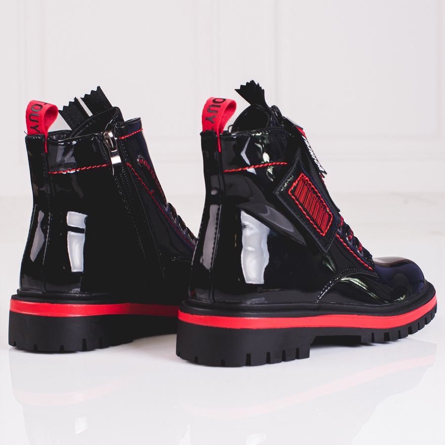 SHELOVET Lakierowane botki dziewczęce z czerwonymi wstawkami Shelovet czarne czerwone