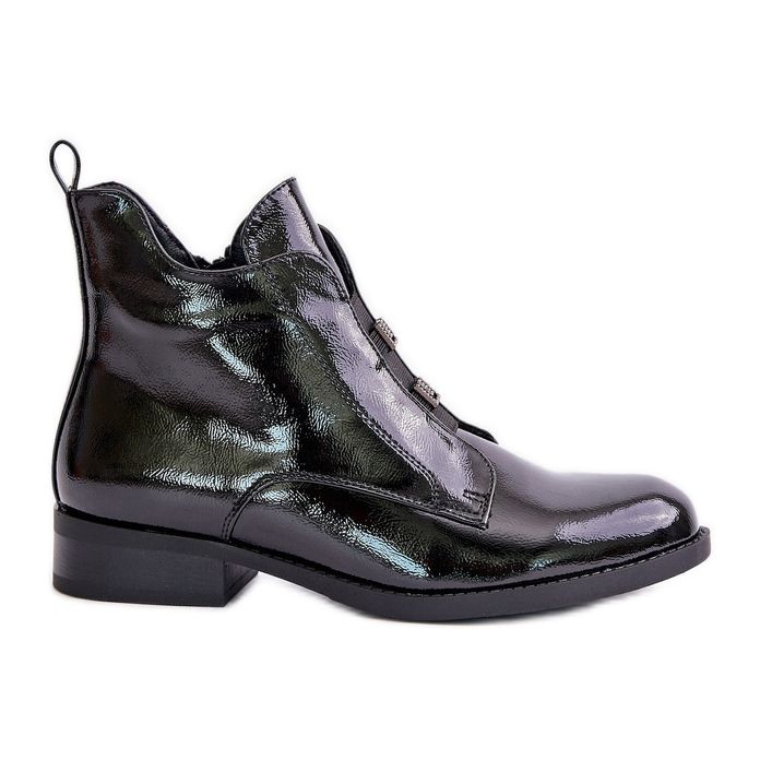 - Model: Lakierowane Botki Na Zamek Ocieplane