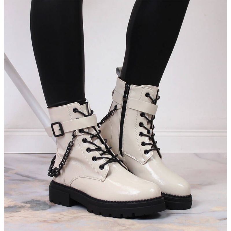Szczegóły: Lakierowane botki z łańcuszkiem ocieplane Laura La.Fi W PMR28 beżowy