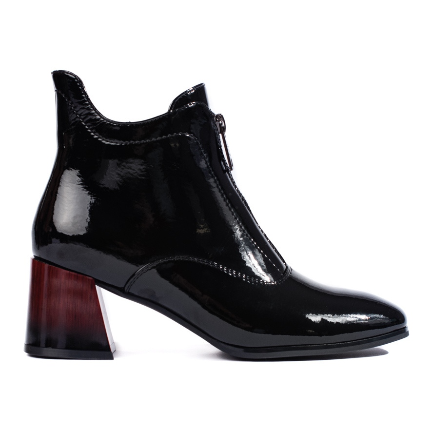 - Model: Lakierowane czarne botki na słupku z suwakiem