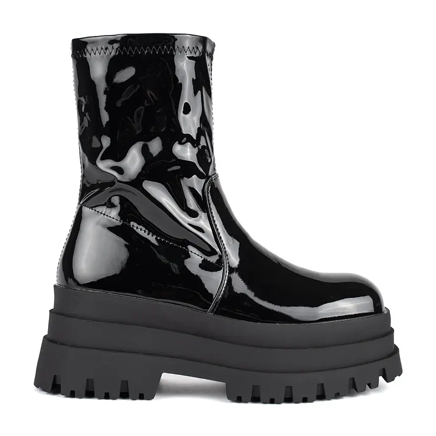 Inna marka Lakierowane czarne botki na wysokiej platformie