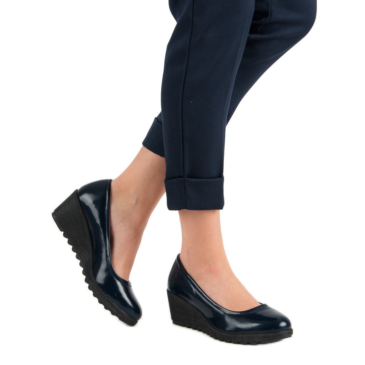 Odkryj elegancję i wygodę w każdych krokach z lakierowanymi czółenkami granatowymi od J. Star. Te stylowe buty na koturnie to doskonały wybór na wiosnę i lato, idealnie wpisujące się w casualowy styl. Wykonane z wysokiej jakości lakierowanej skóry ekologicznej, czółenka łączą modny wygląd z komfortem noszenia.