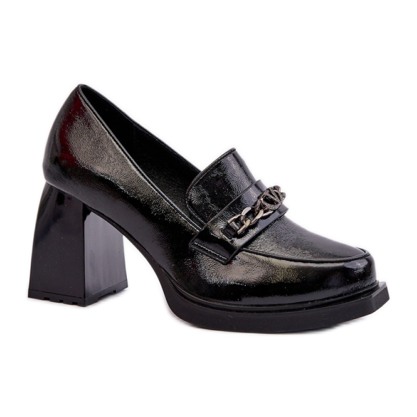 Szczegóły: Lakierowane czółenka na obcasie Black czarne