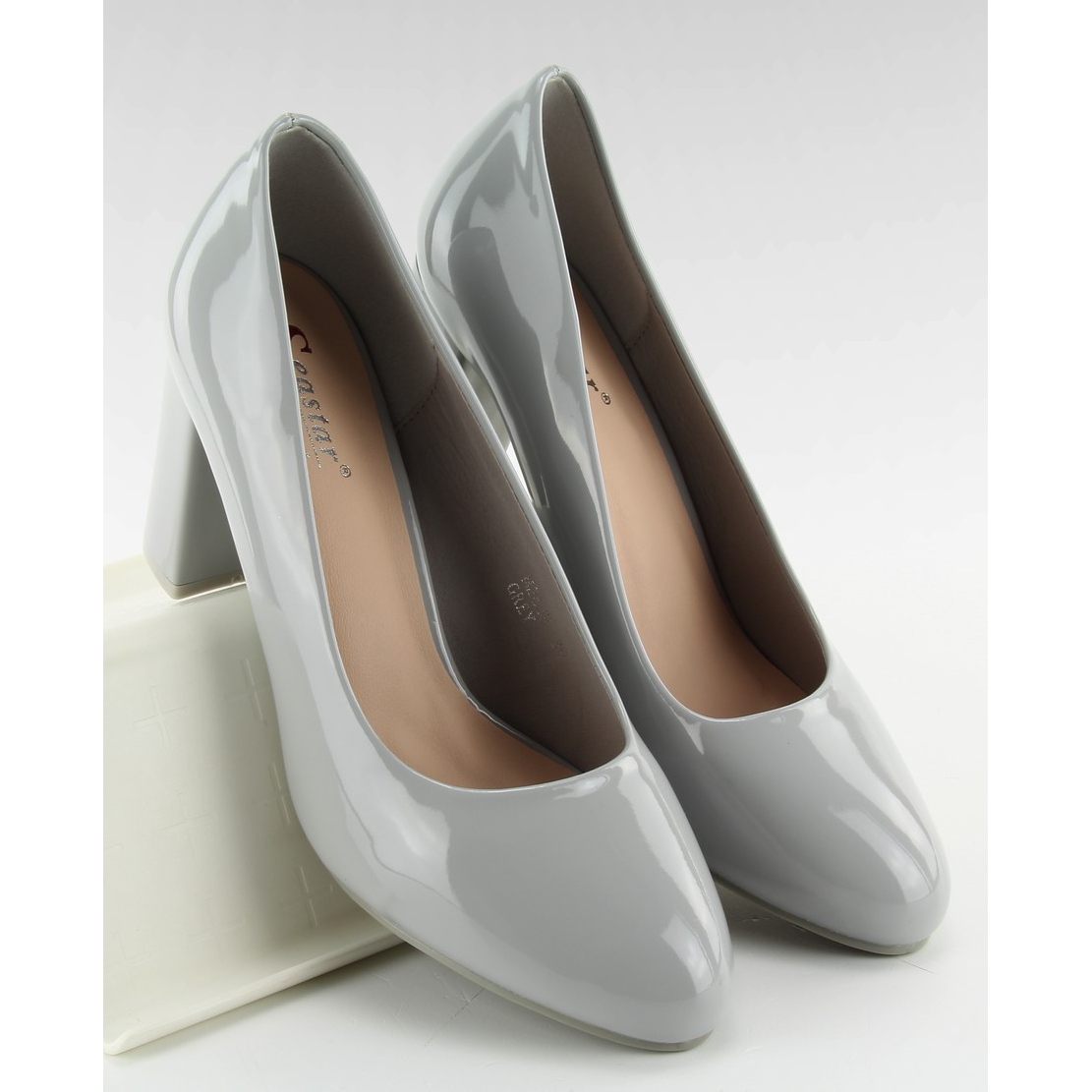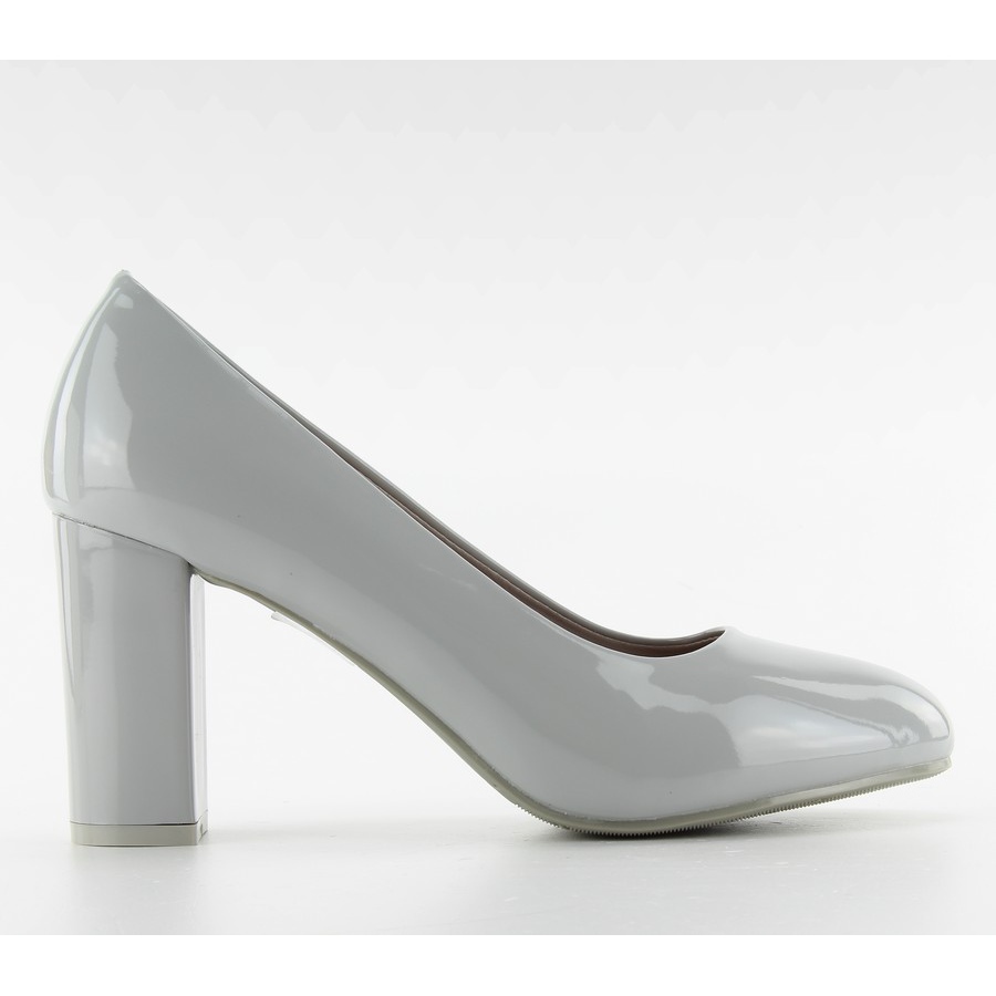 Lakierowane czółenka na szerokim obcasie m263p — Grey