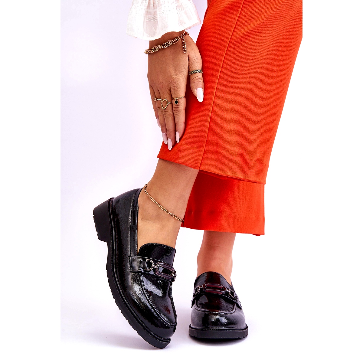 - Model: Damskie Lakierowane Mokasyny Loafersy