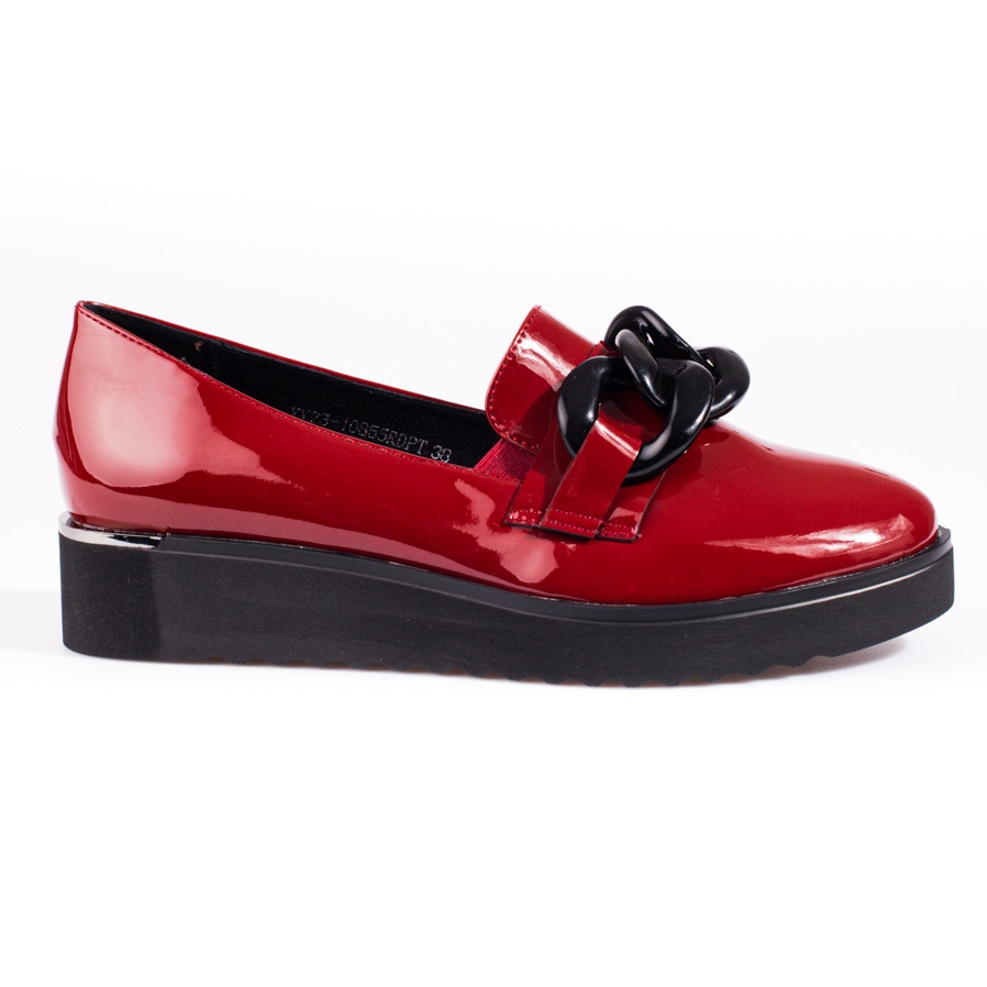 Odkryj elegancję i komfort w jednym z najnowszych modeli lakierowanych mokasynów od Vinceza. Te bordowe czerwone buty, wzbogacone o modny łańcuszek, to idealny wybór dla kobiet, które cenią sobie zarówno wygodę, jak i styl.