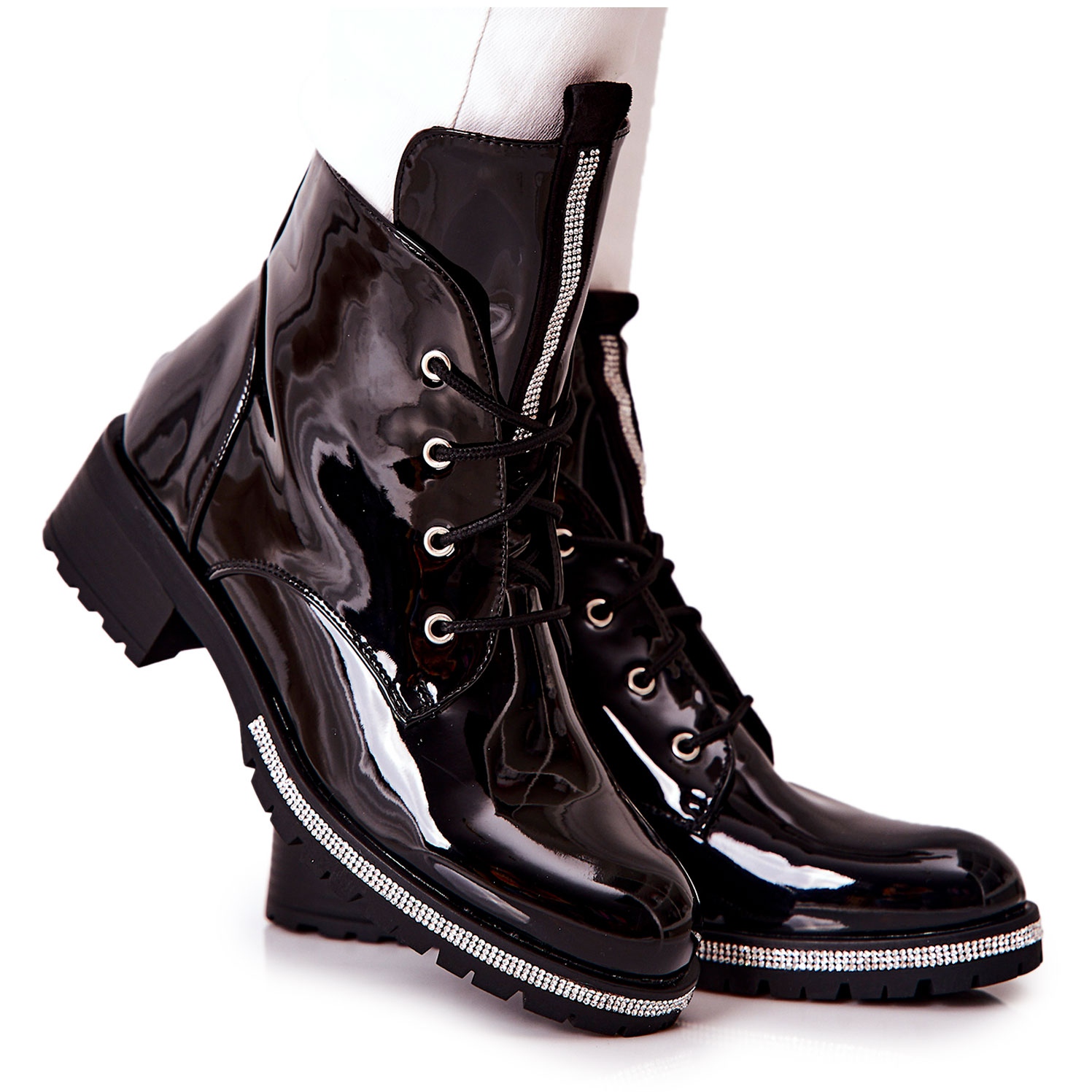 Inna marka Lakierowane Ocieplane Botki Czarne Grecia