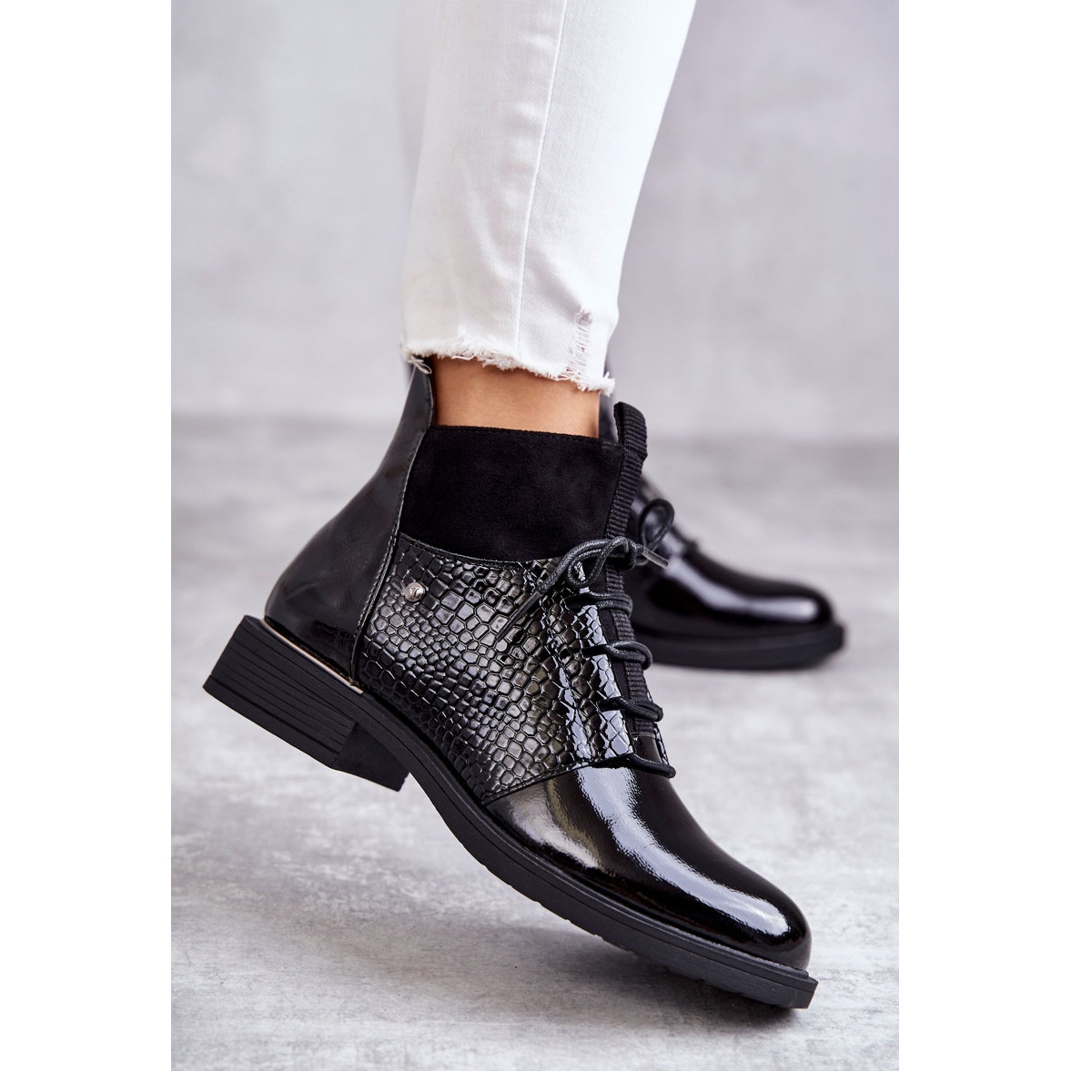 - Model: Lakierowane Ocieplane Botki Sznurowane