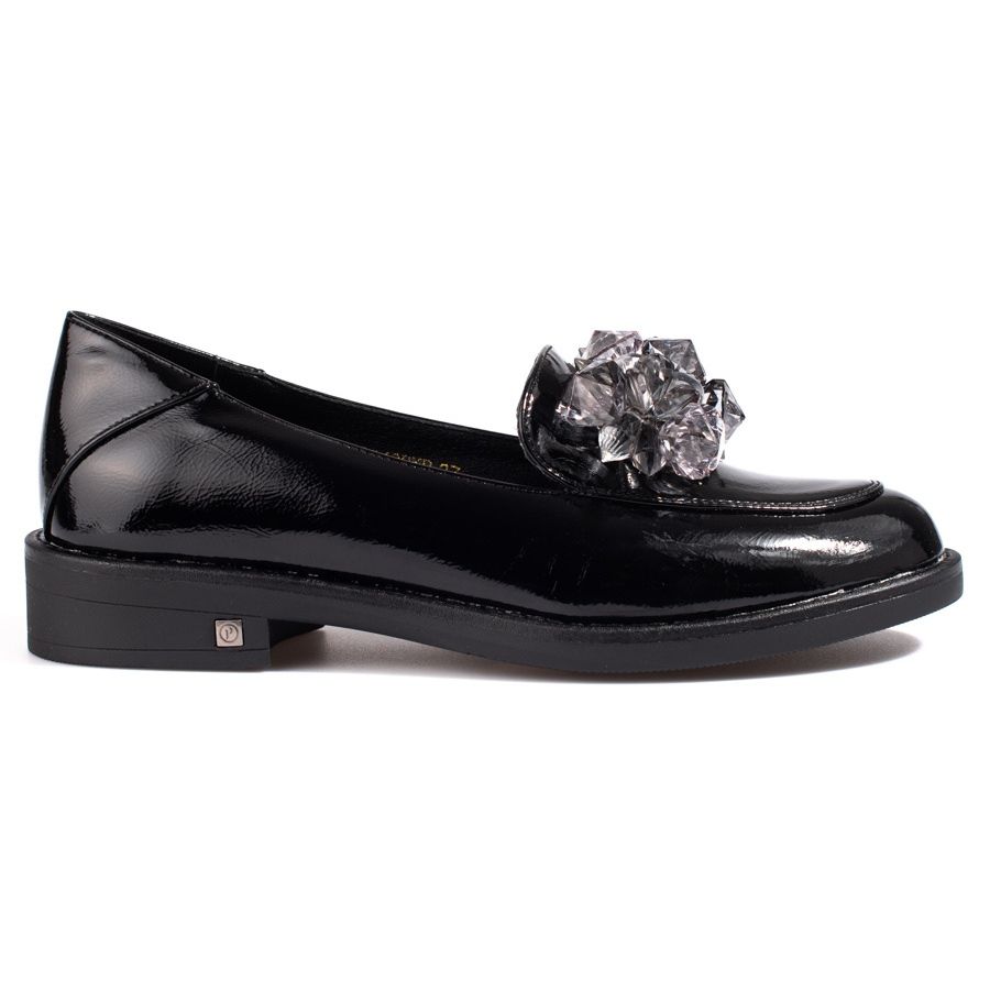 W. Potocki W. Potocki Lakierowane półbuty damskie z ozdobą Potocki czarne