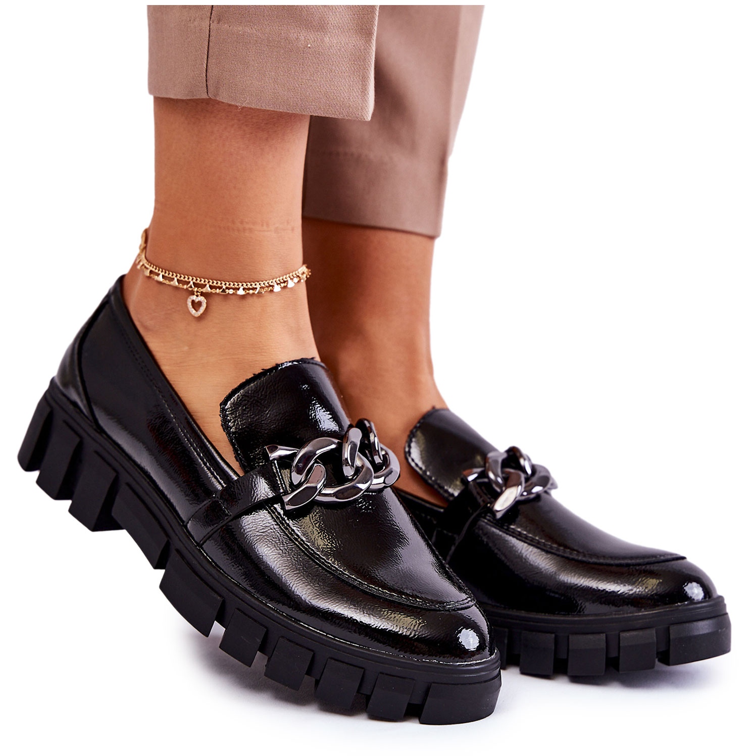 - Model: Lakierowane Półbuty Loafery Na Platformie