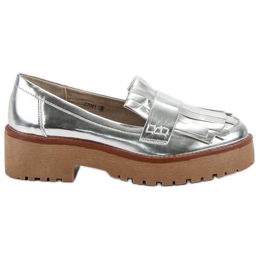Szczegóły: Corina Lakierowane Półbuty Mokasyny szare