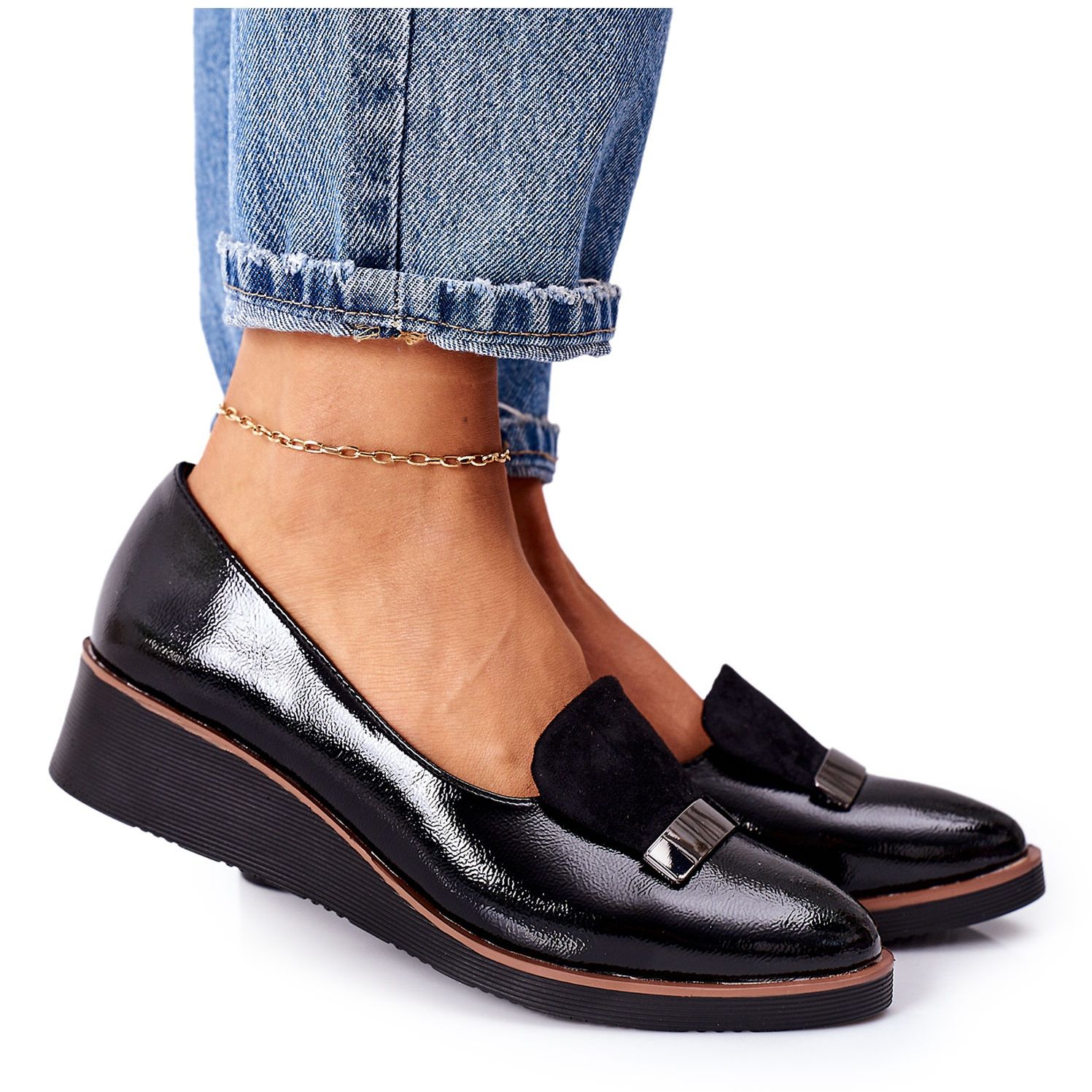 POTOCKI Lakierowane Półbuty Na Koturnie POTOCKI 12032 Czarne
