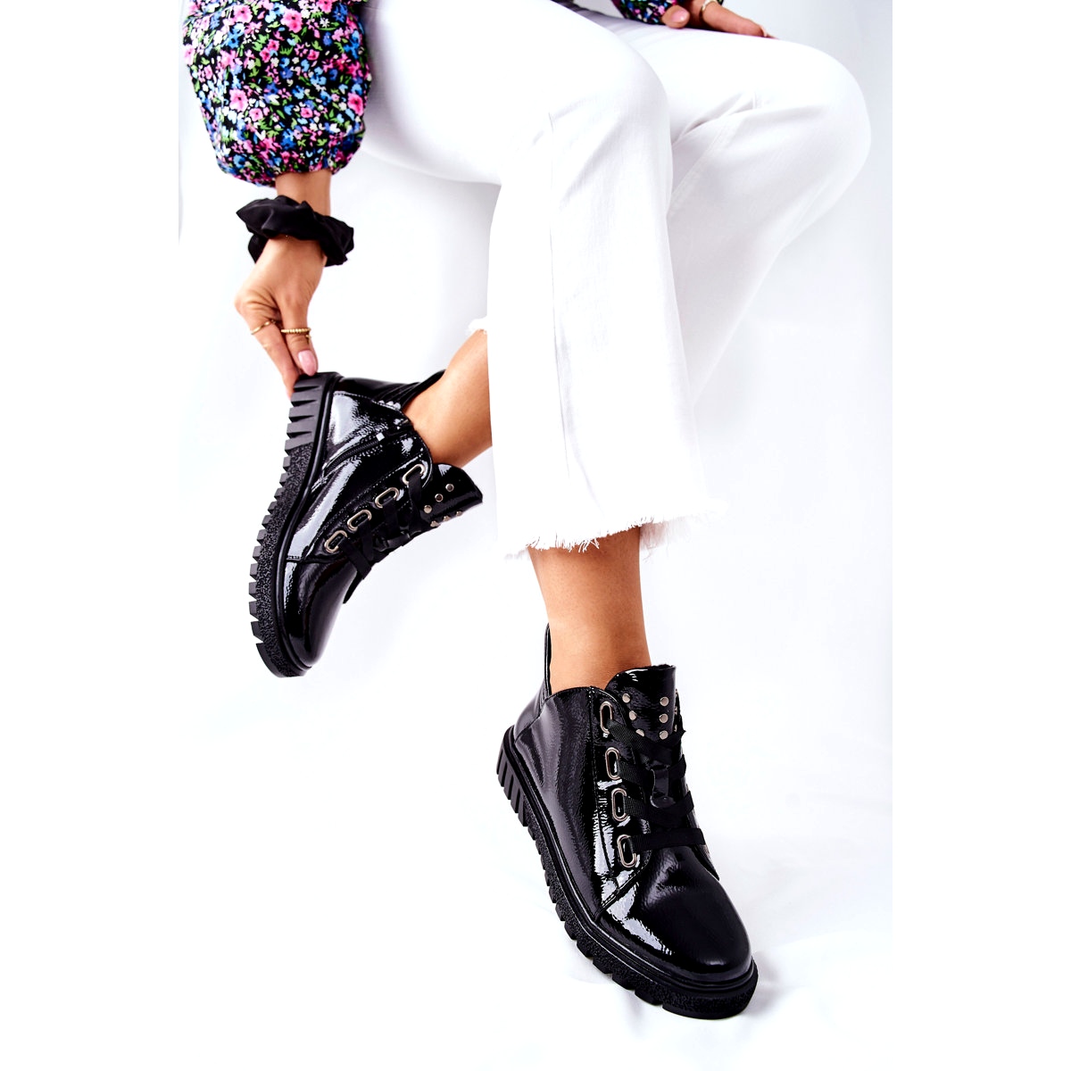 Lakierowane Półbuty Sergio Leone PB210 w kolorze czarnym to wyrafinowany wybór dla kobiet, które cenią sobie elegancję oraz komfort. Stworzone z najwyższej jakości lakierowanej skóry ekologicznej, te półbuty wyróżniają się starannym wykończeniem, które zapewnia zarówno estetyczny wygląd, jak i trwałość.