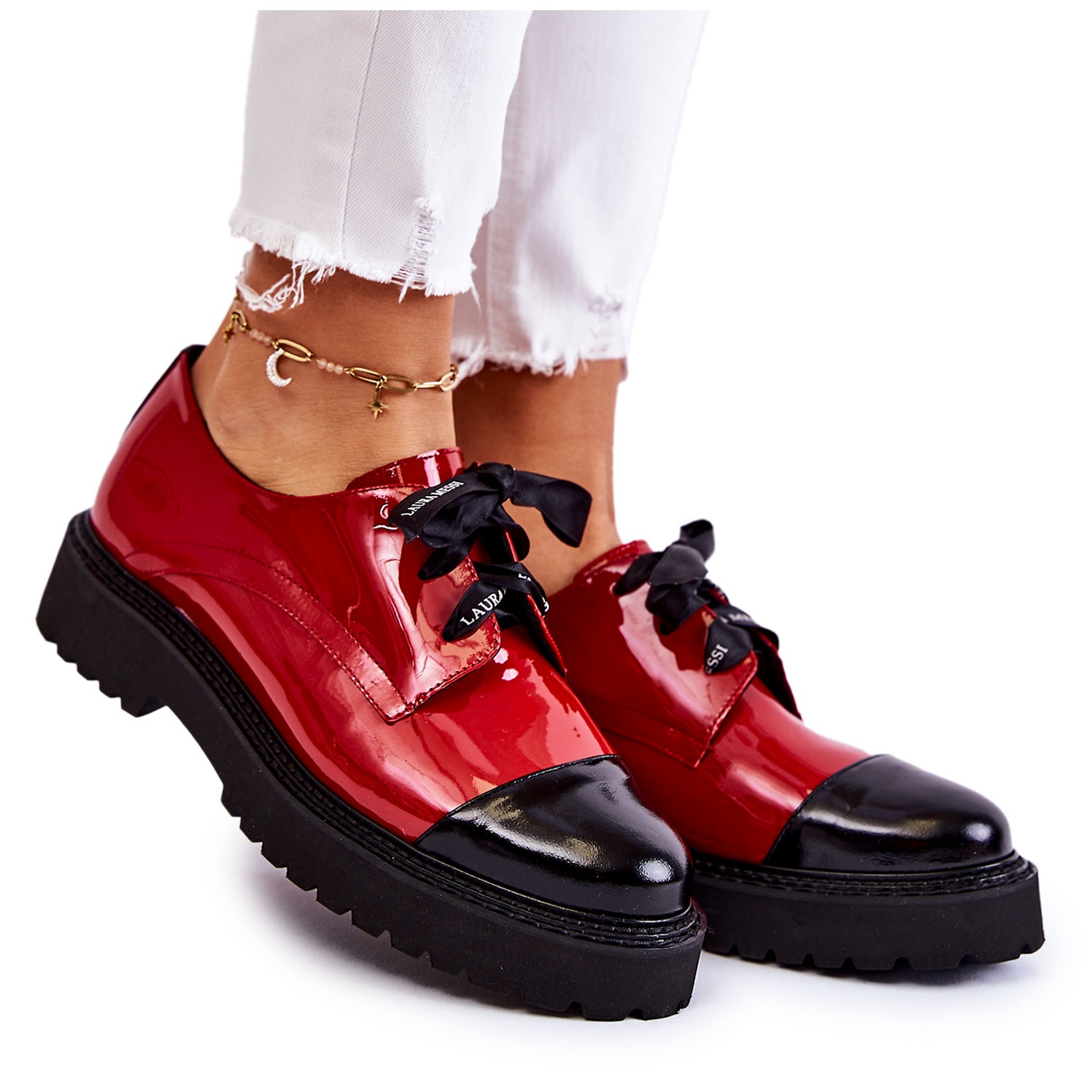 Laura Messi Lakierowane Półbuty Wiązane Laura Messi 2441 Czerwone