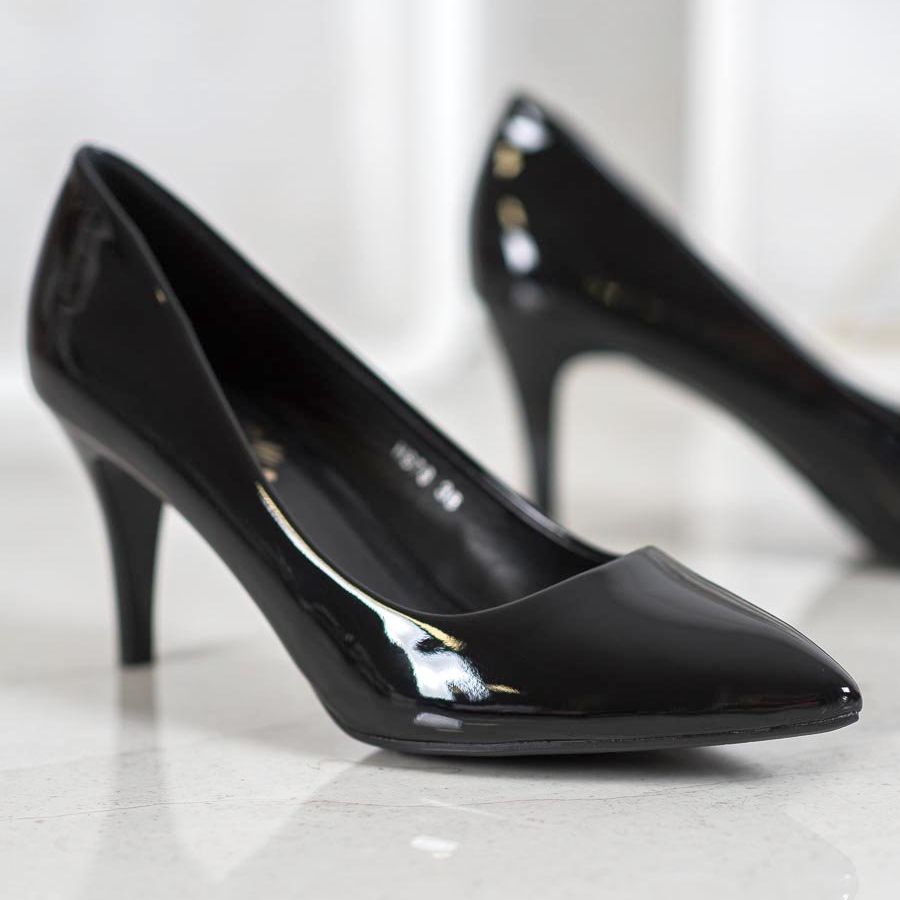 Szczegóły: Small Swan Lakierowane Szpilki W Szpic czarne