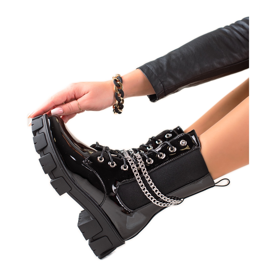 TRENDI TRENDI Lakierowane Workery Z Łańcuszkami czarne