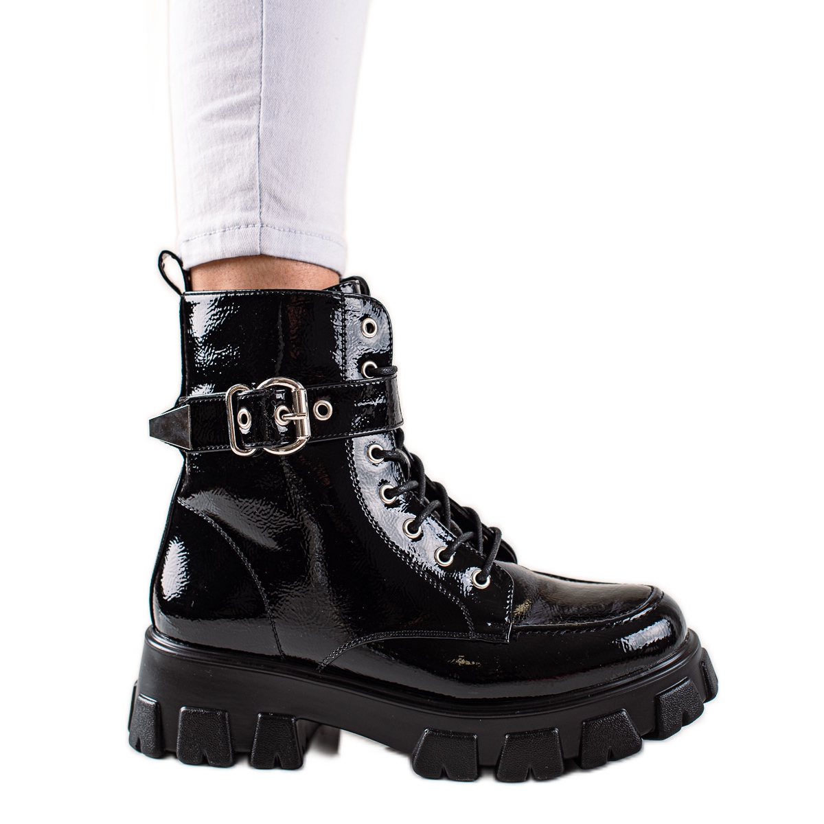 Szczegóły: TRENDI Lakierowane Workery Ze Sprzączką czarne