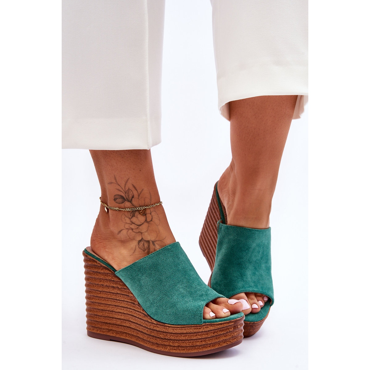 Inna marka Lekkie Klapki Na Masywnej Platformie Zielone Good Vibe